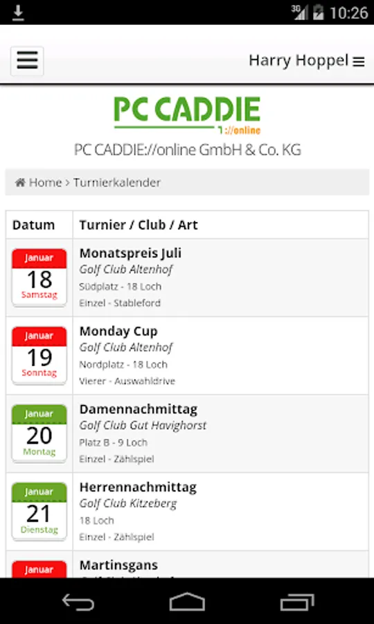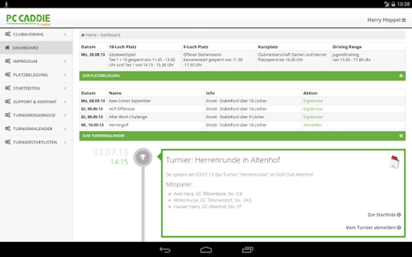The PC CADDIE: // online Golf Club app gives golfers access to mobile booking of all golf equipment connected to the app.