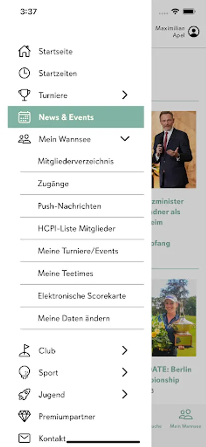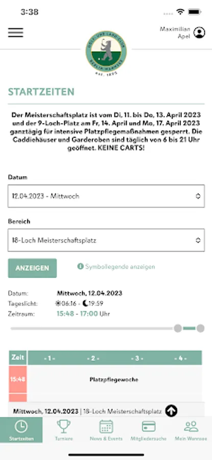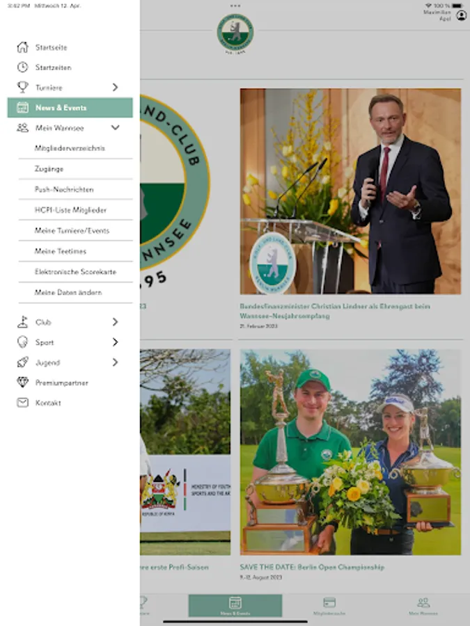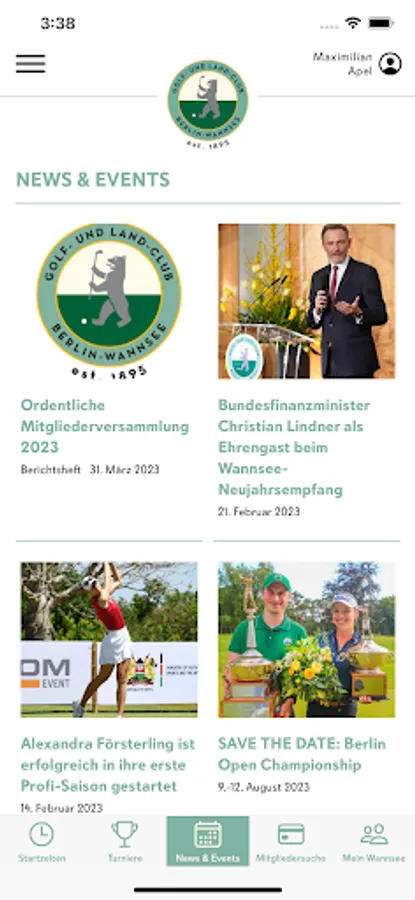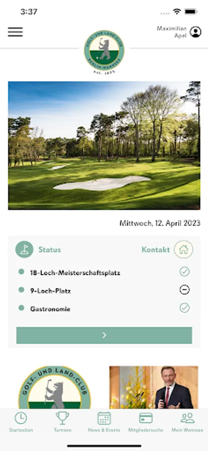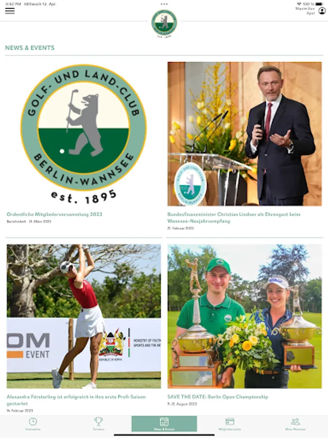 The members' app of the Golf- und Land-Club Berlin-Wannsee e.V. provides numerous functions and information.