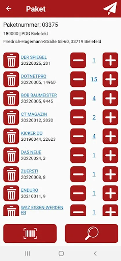 Every newspaper/magazine or article delivered by us can be recorded by scanning the barcode or entering the article number or VDZ number. Once the add-on has been recognized, just enter the quantity. If the add-on is not recognized, simply select the correct edition and enter the quantity.