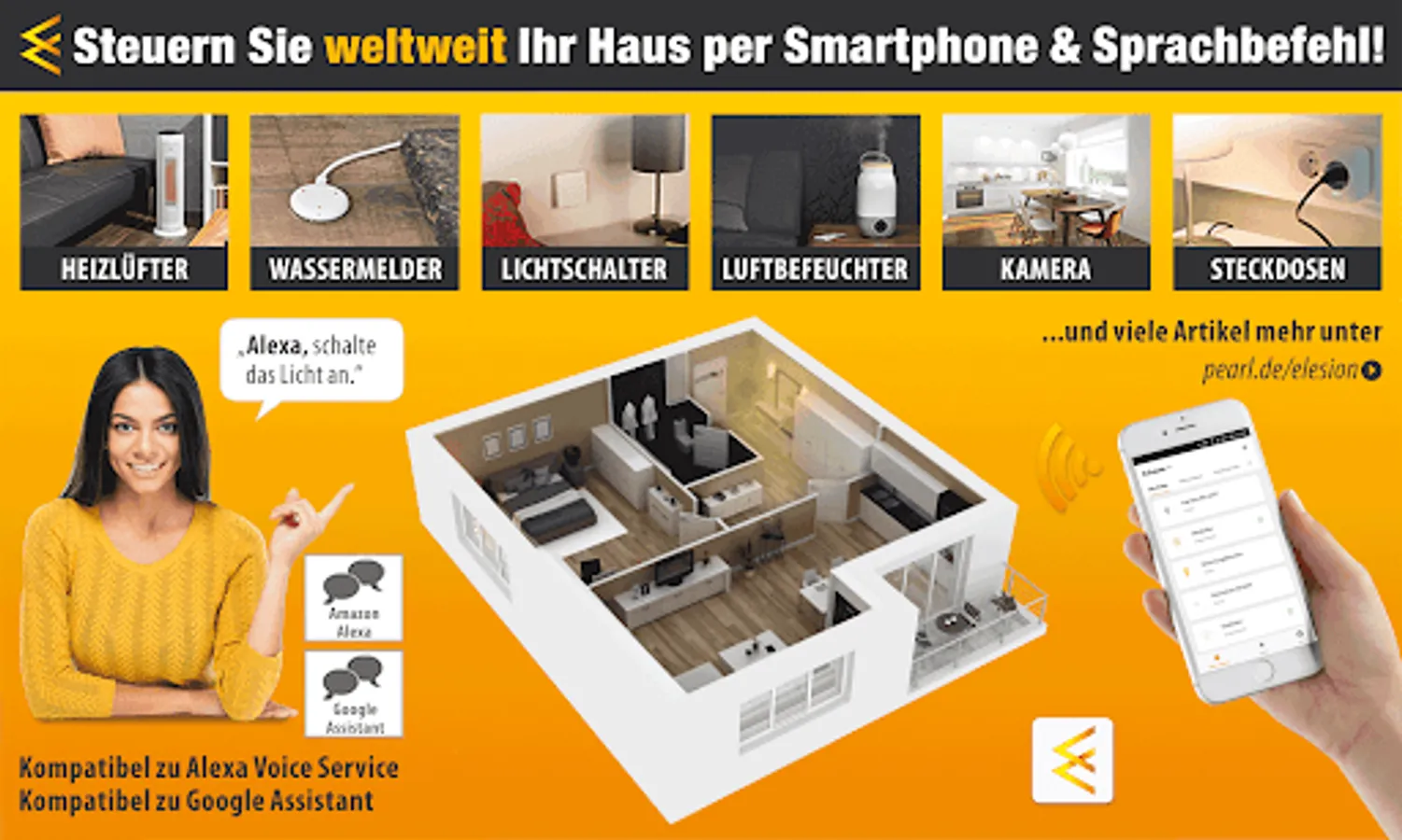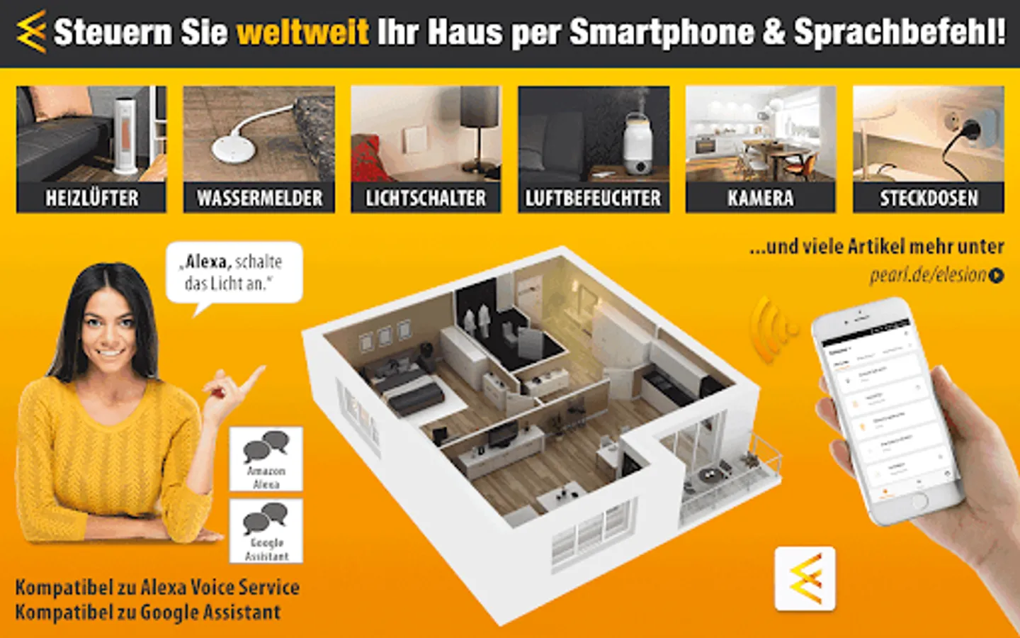 The ELESION app enables all compatible smart home devices to be controlled via smartphone, voice or external services. Access your household devices from anywhere and around the world with your Android smartphone and tablet.