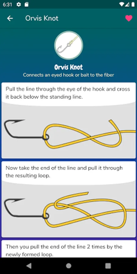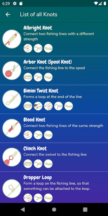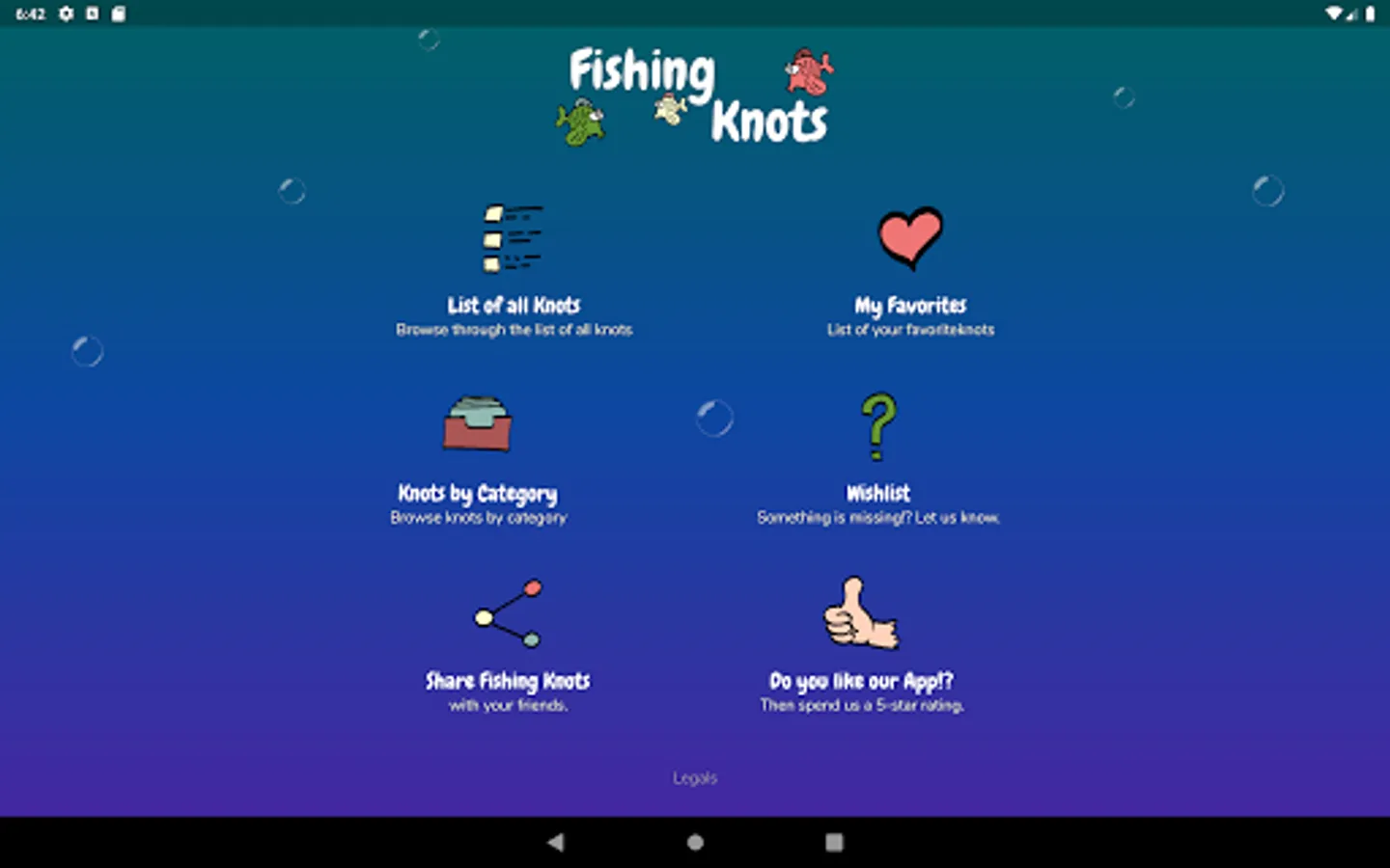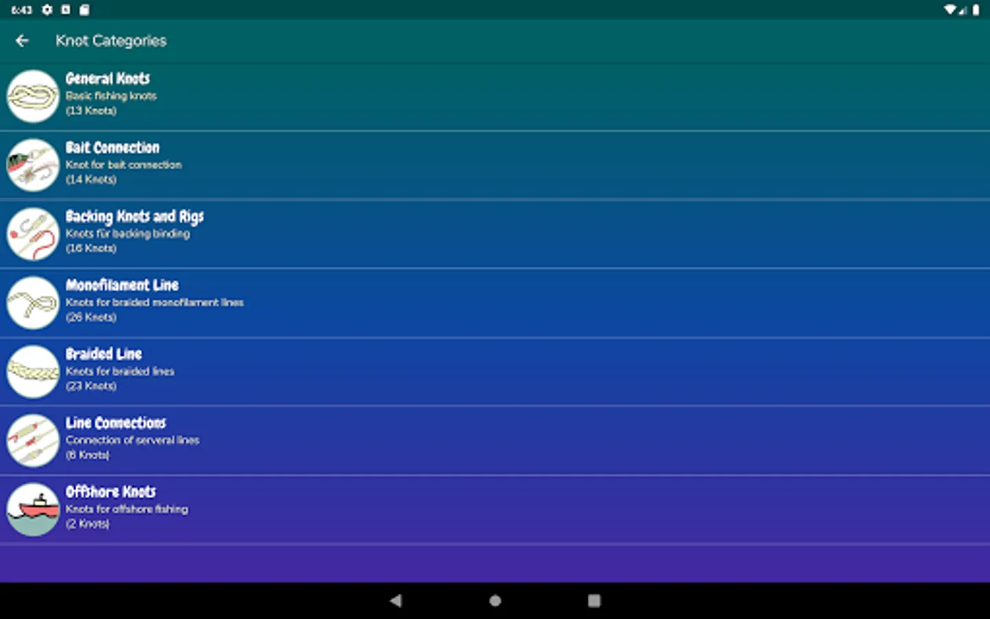 Fishing Knots is a personal pocket helper tool, that explains how to bind the most important fishing knots. It helps you attaching your flies, hooks, sviwels and other baits. No matter what kind of fishing you are doing, FishingKnots contains tutorials of the most important knots.
