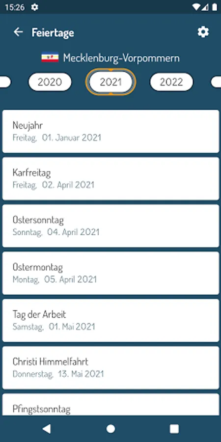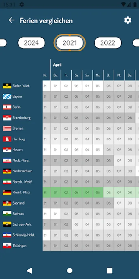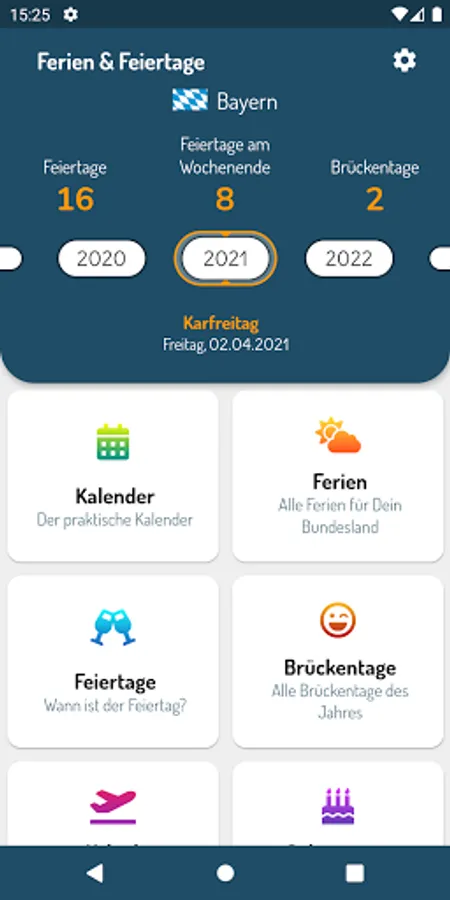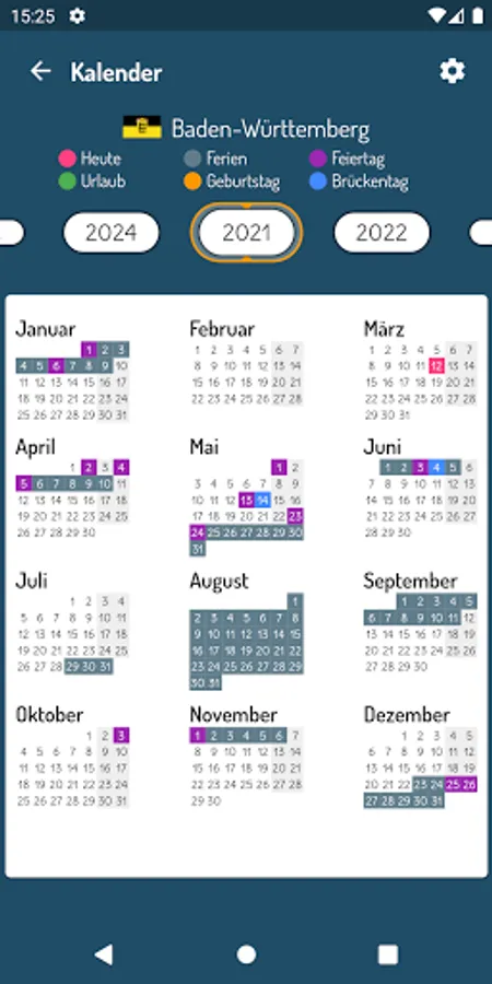 Plan your vacation with the "German Holidays & Holidays" app. It helps you to plan optimally over the holidays, vacations and bridging days in your state. The fully configurable app supports you with comfortable calendar and list views. Plan your vacation efficiently over the bridge days of a year.