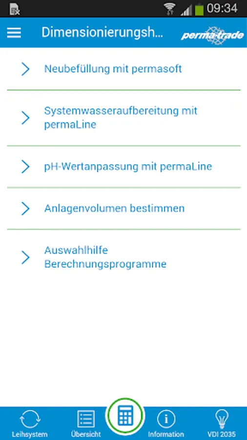 The app offers various dimensioning aids for the use of perma-trade products for heating water treatment: