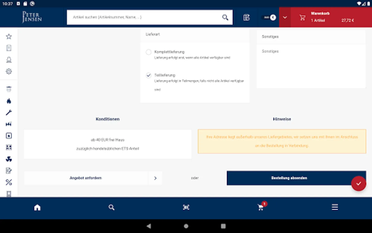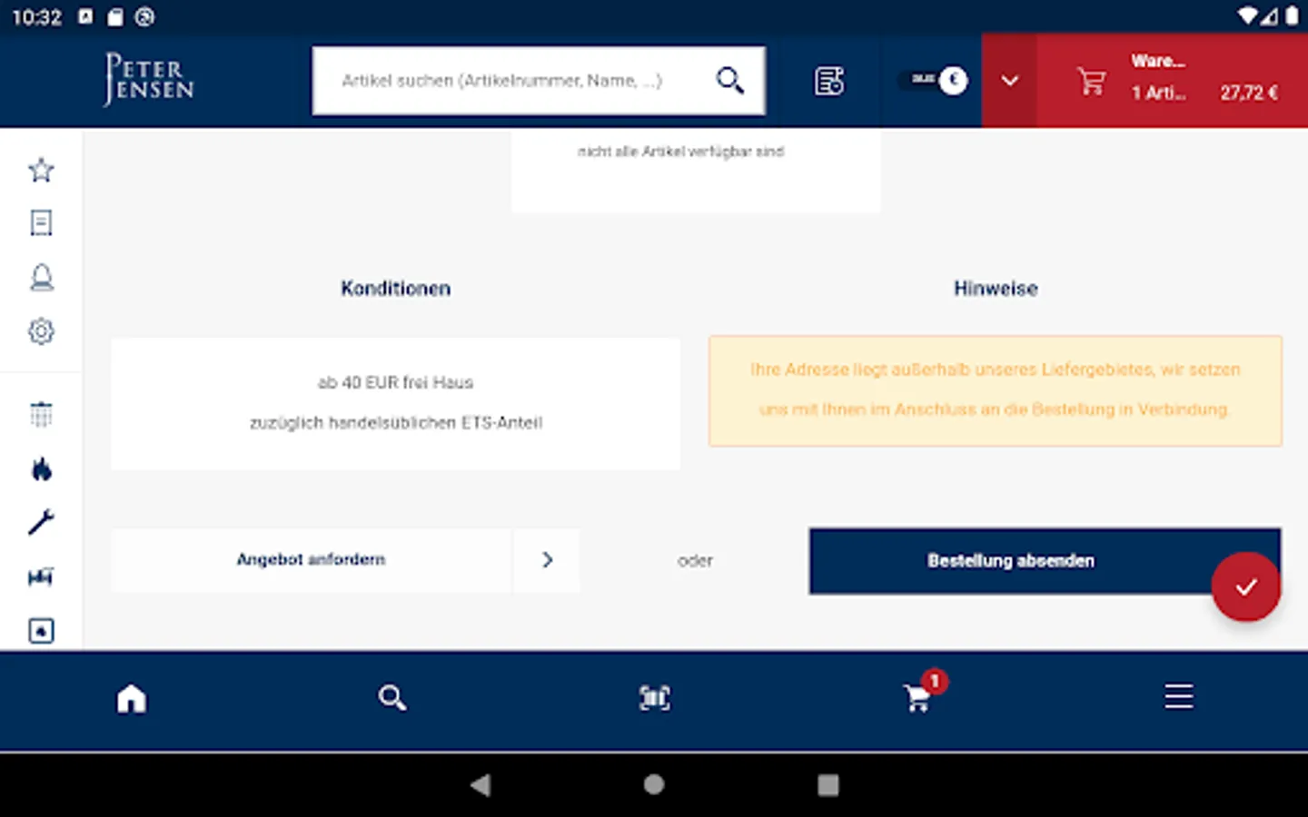 The Petershop app offers you all the functions of the online shop on the go! Always be up to date about current availabilities in the branches and order conveniently on the go! The app also gives you a quick overview of your item lists! All relevant order data such as invoices, delivery notes, open orders and offers are directly available. The Petershop app is therefore your daily companion on the go.