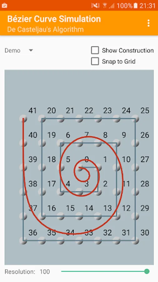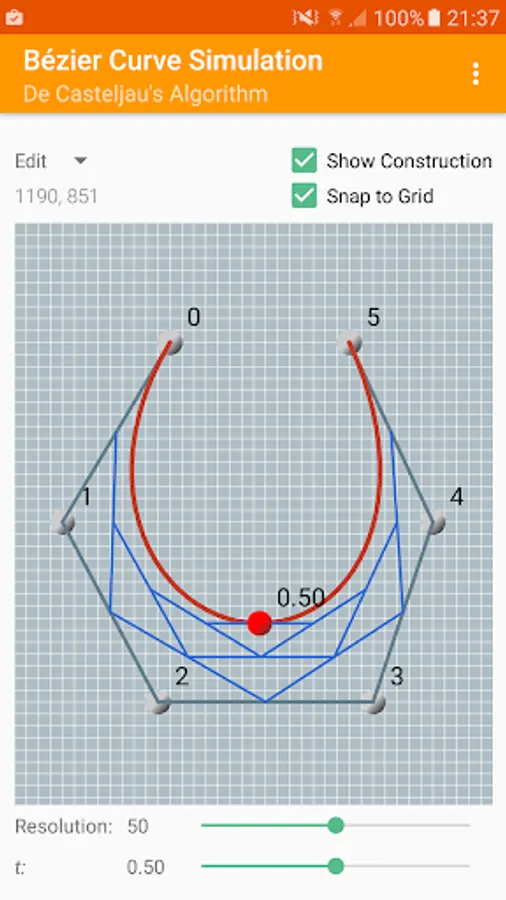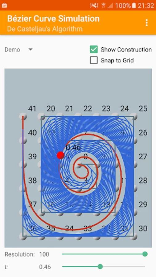 With the help of this app you can carry out the representation of a Bezier curve interactive.
