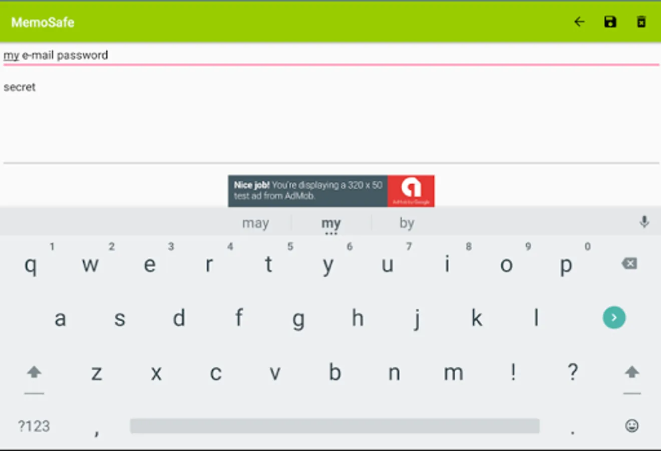 Everyone know this: you are somewhere, and try to remember of an information like a PIN, a password or something similar - and you can't remember. With using MemoSafe these times are over. MemoSafe stores any information enrypted on your device. To gain access, you need to provide a password. Without providing the password no-one is able to gain access to your private information, even if the attacker can get hands on your device. All information are stored by using strong encryption. Critical information like your password are not stored at all.