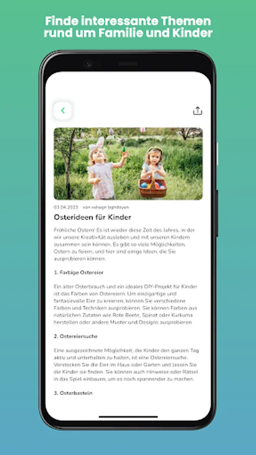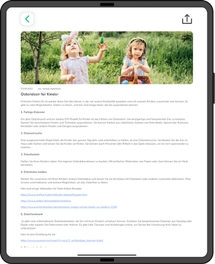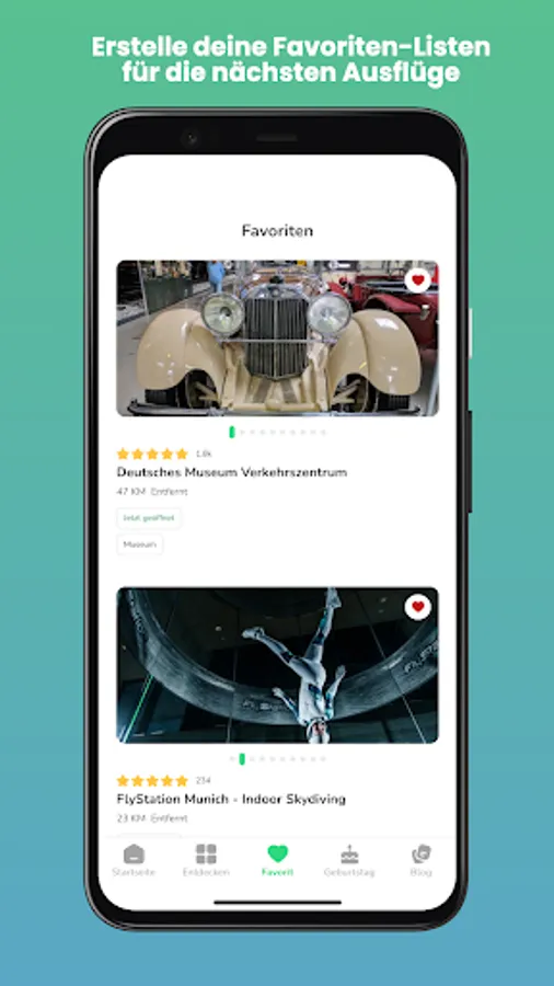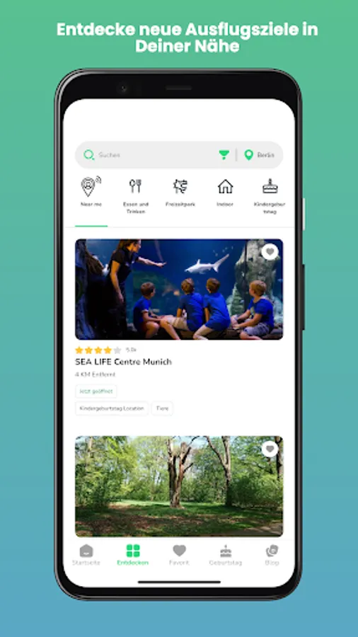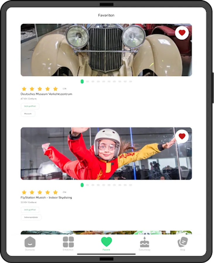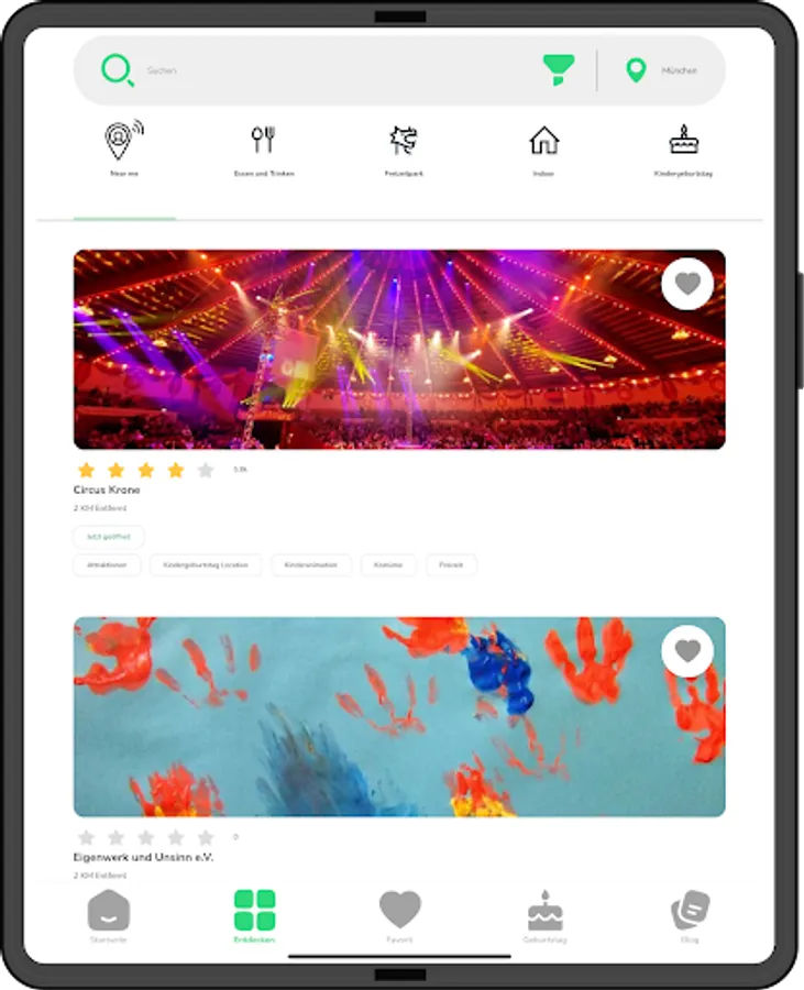 With FamiZeit you can find great ideas for activities, destinations and events for the family and children. Select a category or use the "Near me" function and let yourself be inspired.