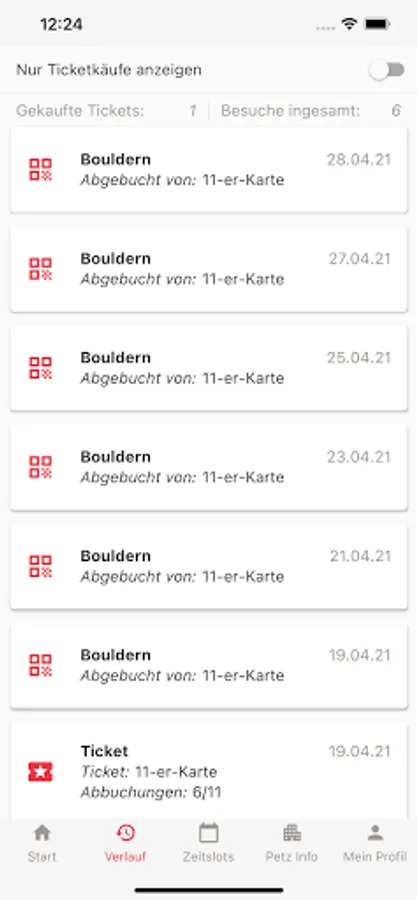 The registration of at least one of the visitors is a prerequisite for access to the hall. All your admission tickets are stored in the app and entitle you to a quick check-in. You can easily check in on site - simply scan the QR code on site, and the entry will be deducted from your ticket stored in the app. If you forget your phone, we can check you in on site. which lists all your tickets and all check-ins. So you always have an overview