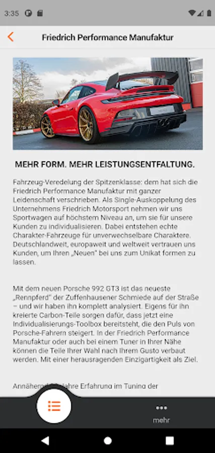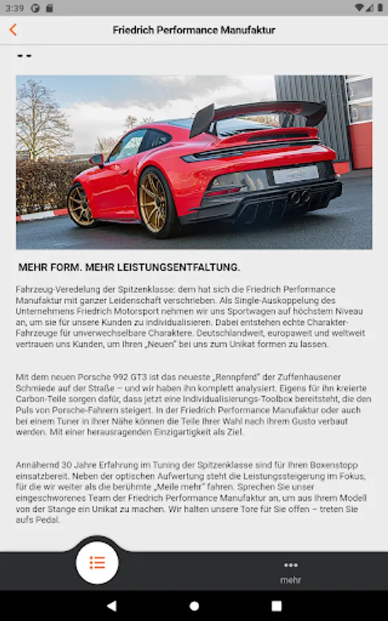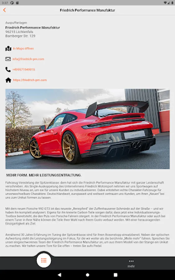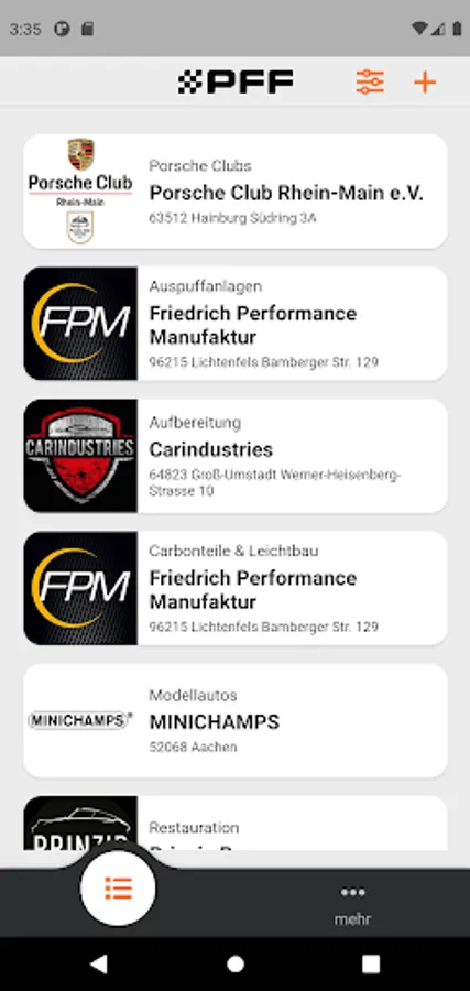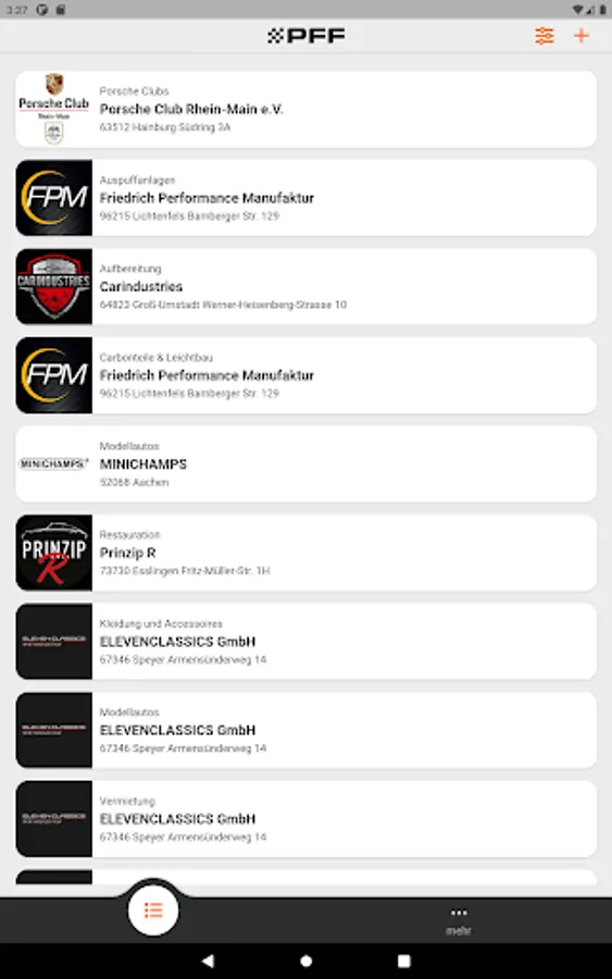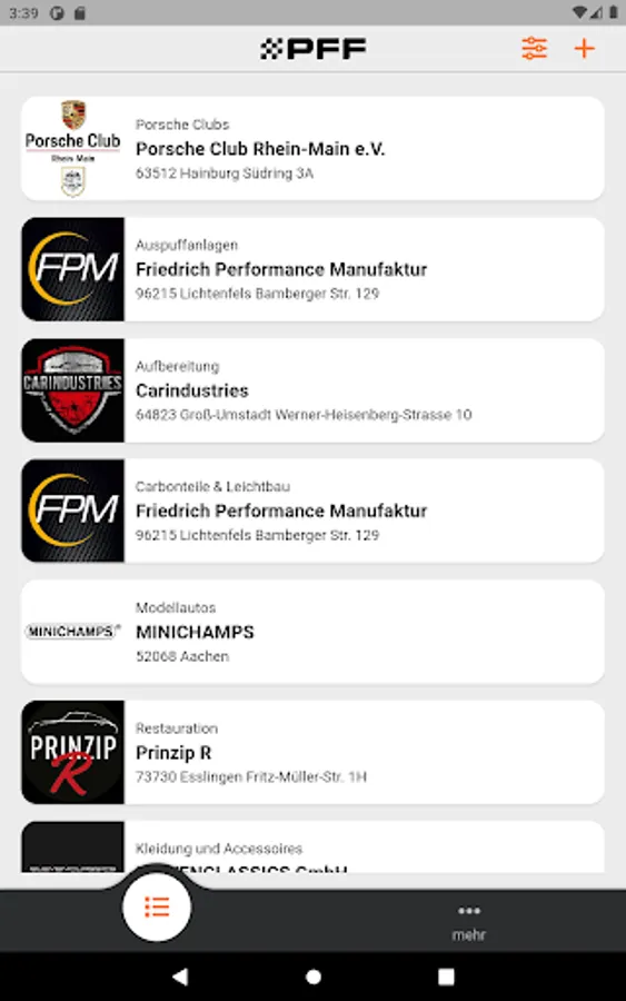 The "PFF - free porsche community" includes about 60% of the Porsche drivers in Germany. In the first step, the app offers our directory, which can also be found at pff.de/directory. Other areas will follow shortly.