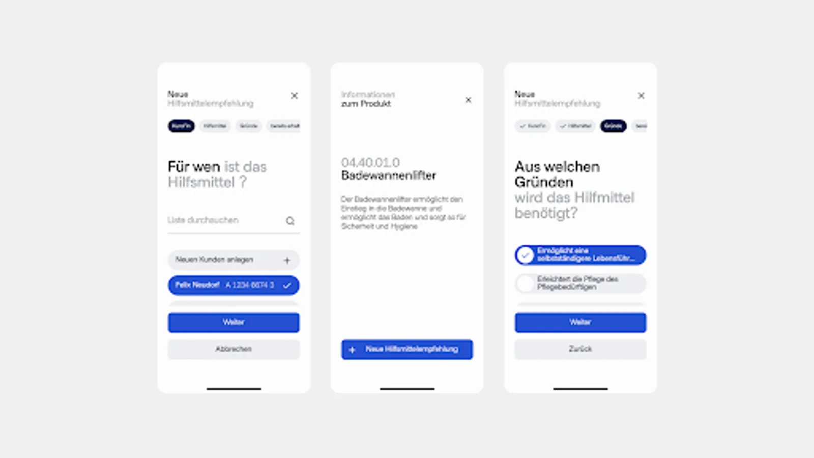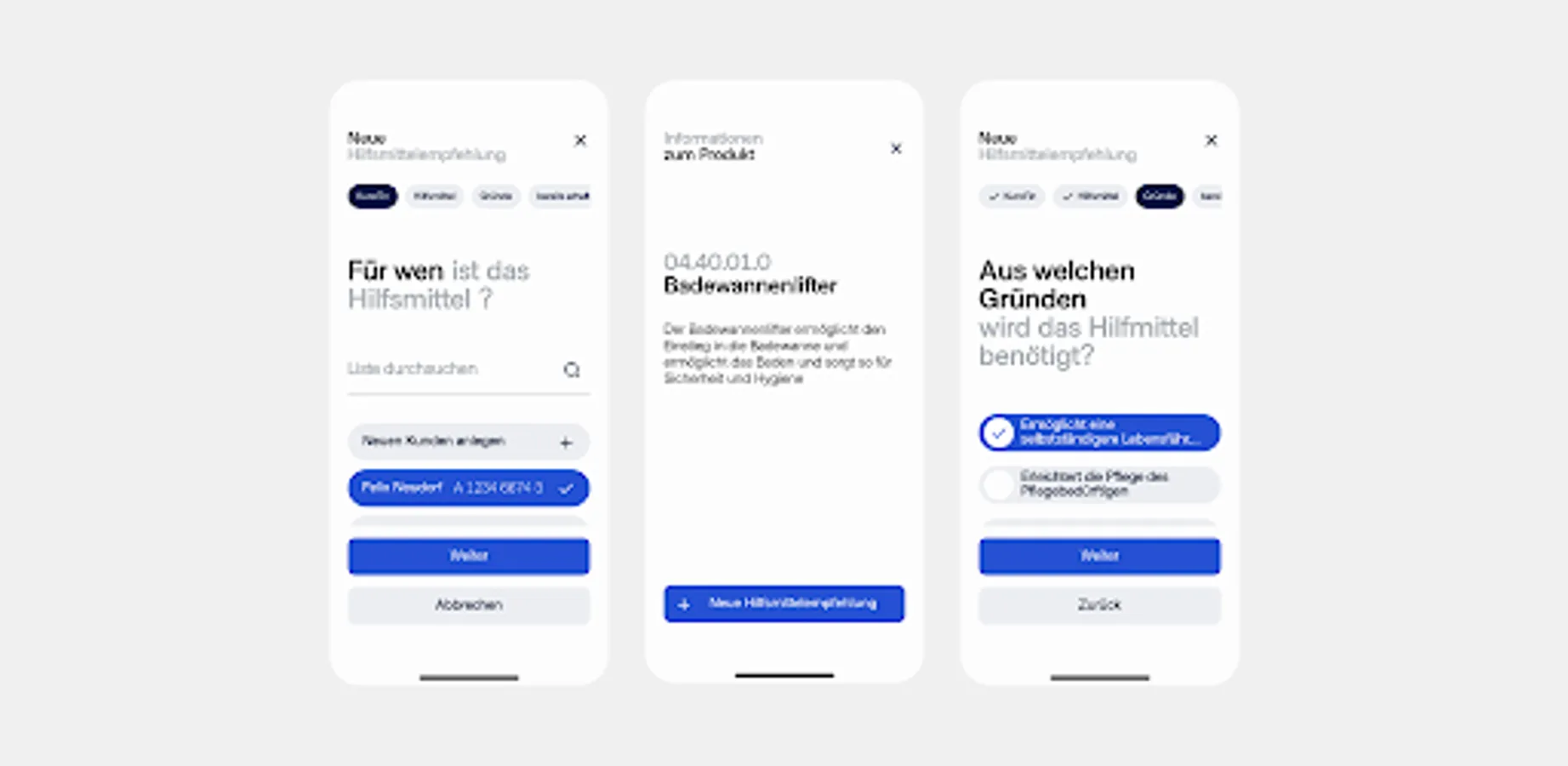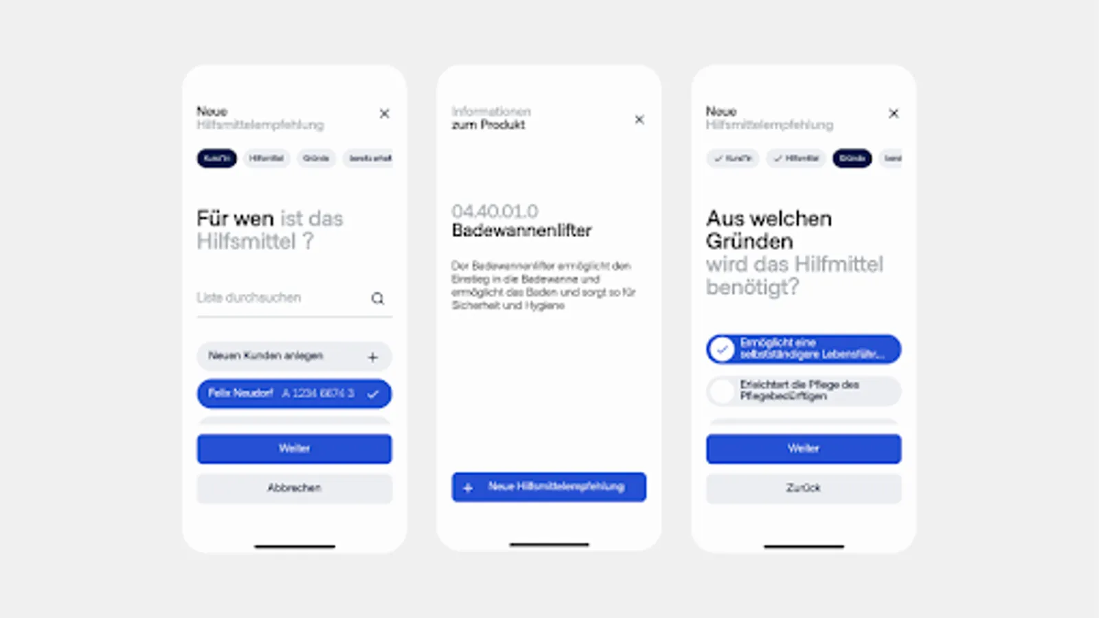 Since January 1st, 2022, according to § 40 paragraph 6 SGB XI, nursing professionals have been entitled to make recommendations for the supply of aids and nursing aids as part of their service provision and can now recommend them immediately with the Pflemi app!