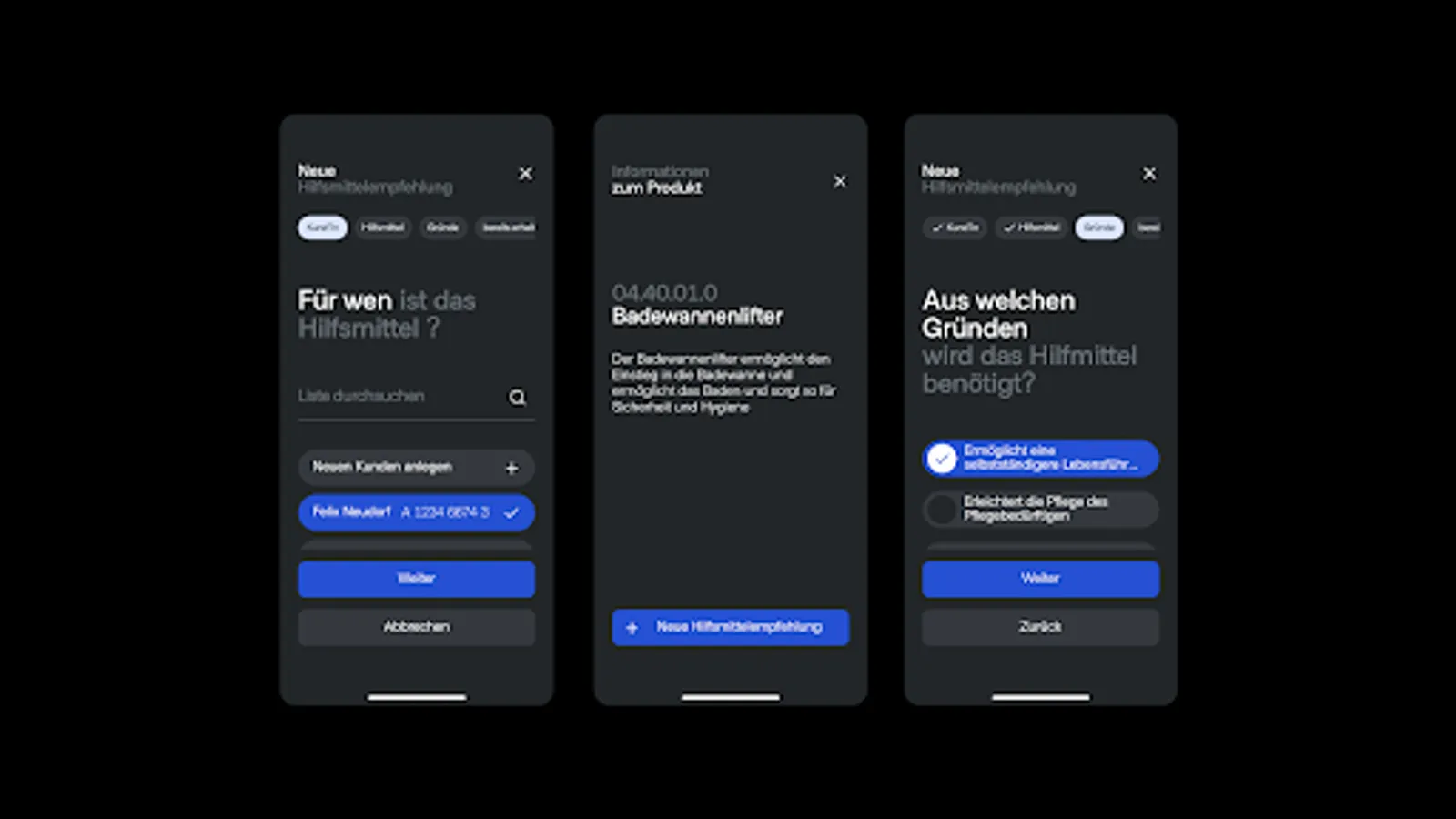 The administrative effort involved in recommending medical aids becomes child's play thanks to the Pflemi app, and the recommendations for medical aids can be sent directly to the service provider.