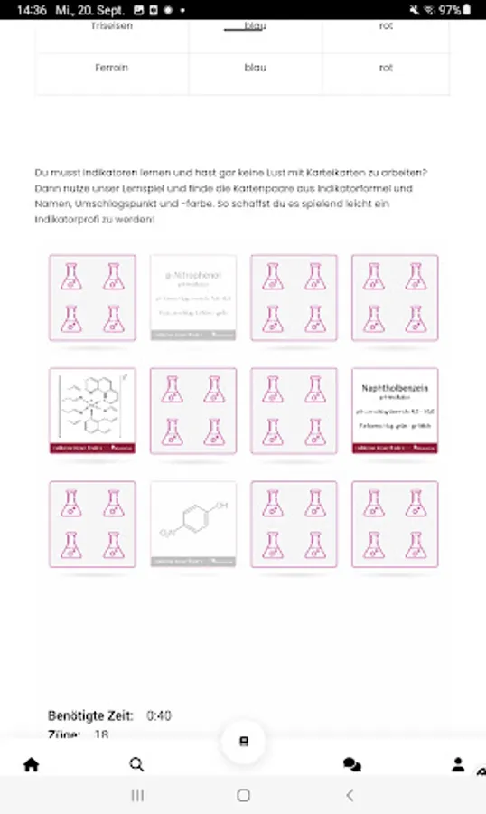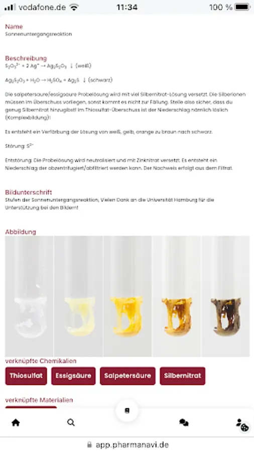 In our laboratory database you can look up experiments, salts, plants and chemicals from all possible laboratory internships! Save your results and notes directly on your mobile phone and discuss all experiments and questions online with fellow students from all over Germany!