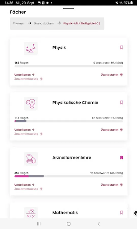 There are real state examination questions, but also many questions from our team with which you can practice the topics you want during the semester.