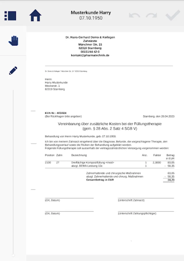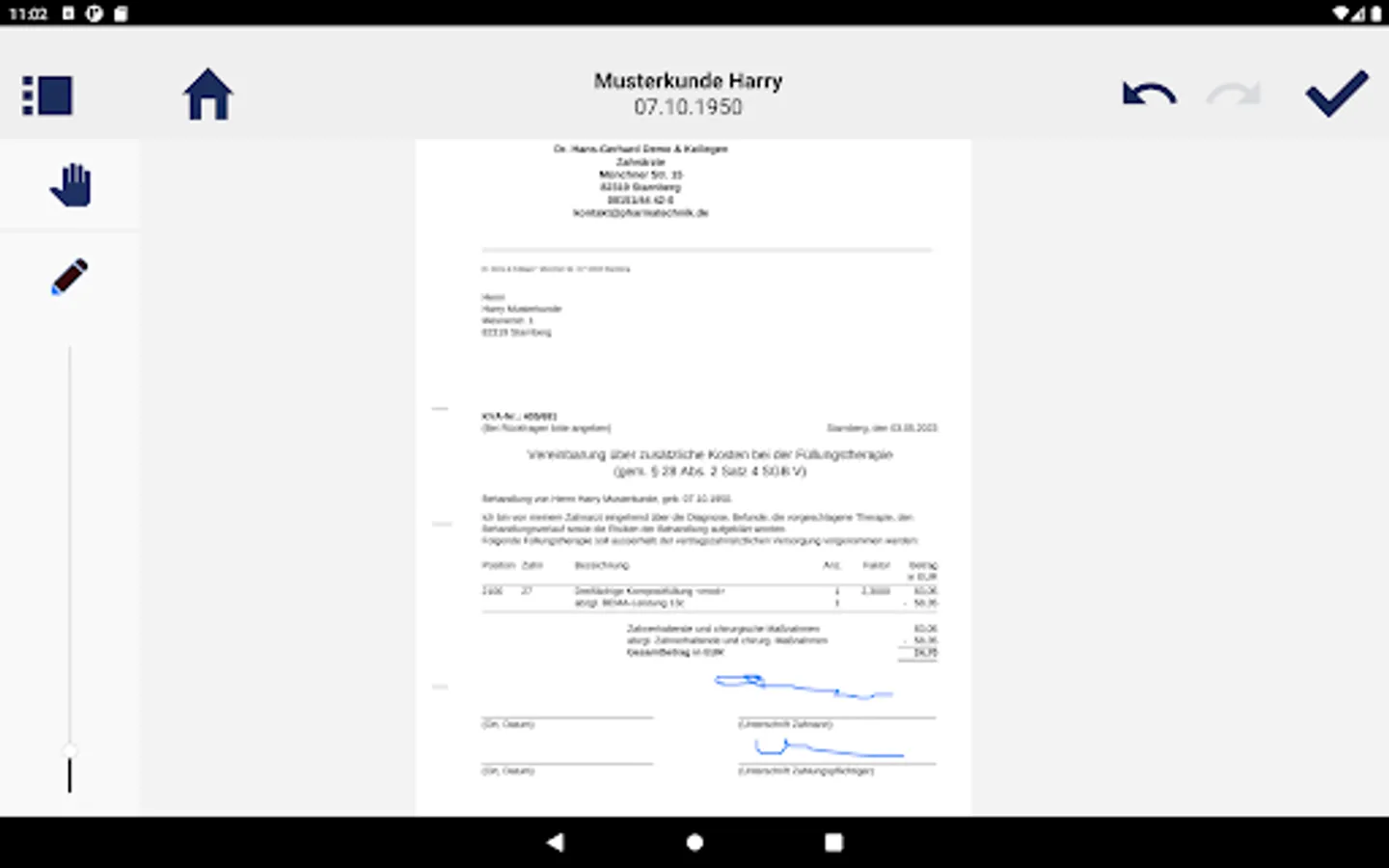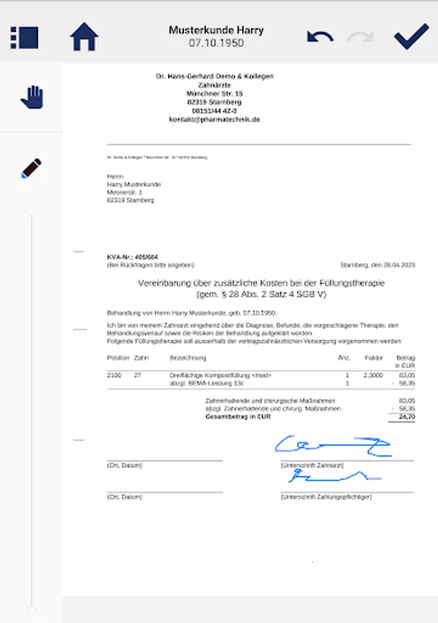 Let your patients sign conveniently on the tablet and thereby reduce the administrative effort in the practice.