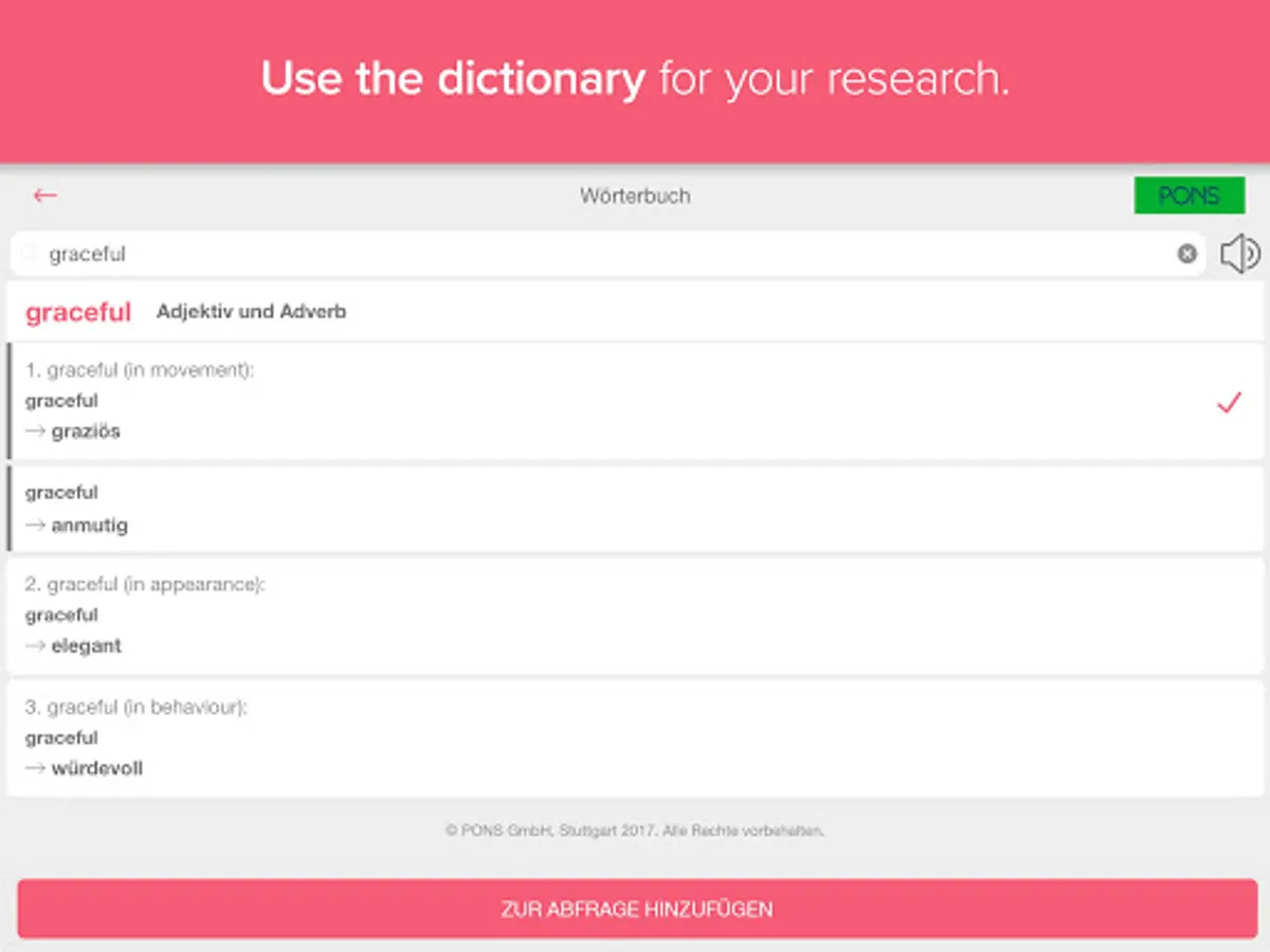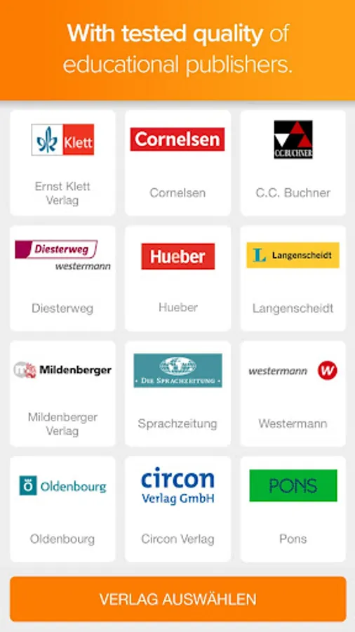 The vocabulary collections for the vocabulary trainer app are developed in cooperation with the leading educational and textbook publishers with university and didactic advice and are tailored to the lesson. Our partners include Klett, Cornelsen, C.C. Buchner, PONS, Langenscheidt, öbv, Hueber, Oldenbourg, hpt and many more.