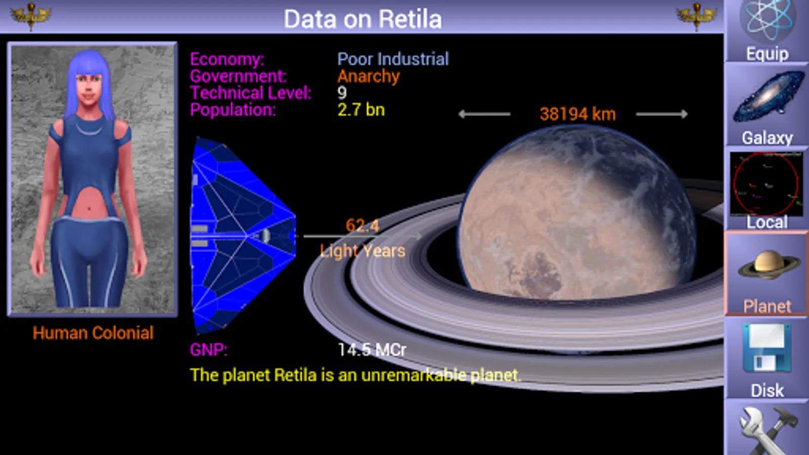 Trade between countless planets, using the proceeds to equip your ship with heat-seeking missiles, beam lasers and other weapons - corporate states can be approached with little risk, but unruly anarchies may be swarming with space pirates. There is a lot of bounty to be made for the daring pilot. Do you have it in you?
