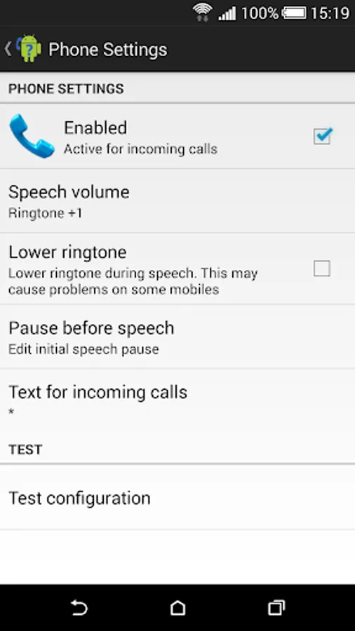 • Uses default TTS (Text-To-Speech) engine and language pack.