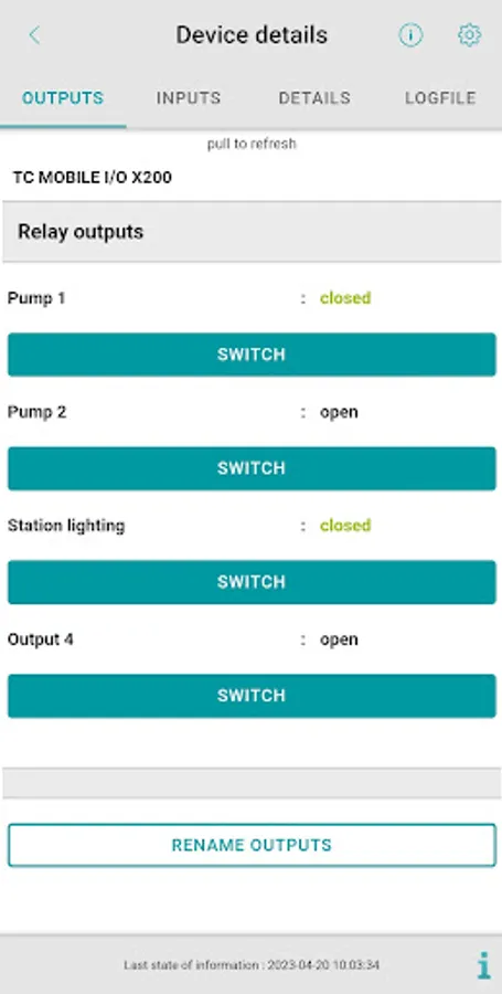 This app supports you in using the TC MOBILE I/O X200 SMS relay (firmware version 2.0 or later). It indicates the device status, and sends the switching commands – the manual writing of SMS is no longer necessary.
