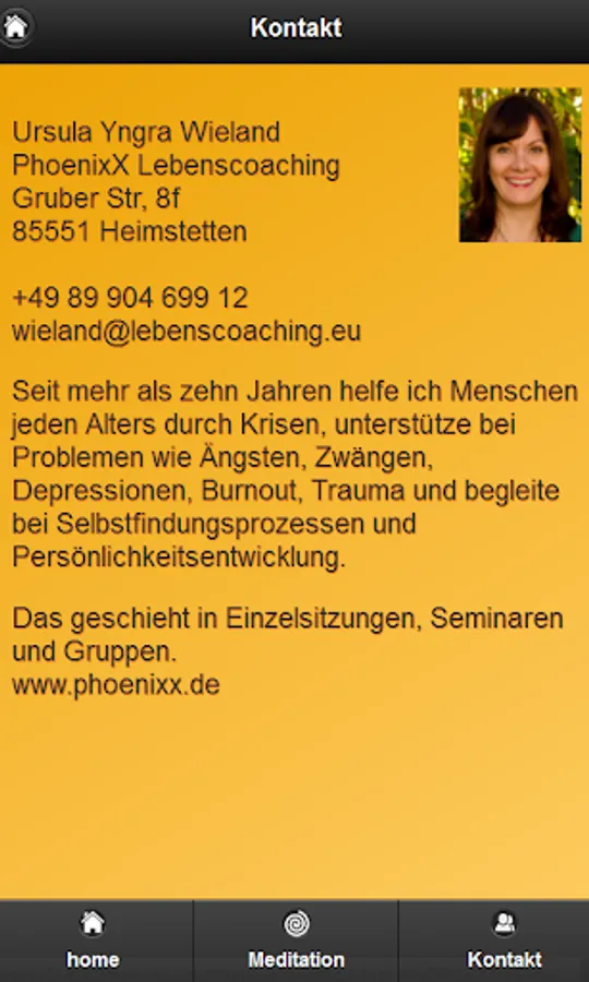 This app contains 5, by Ursula Wieland Yngra spoken, short meditations.