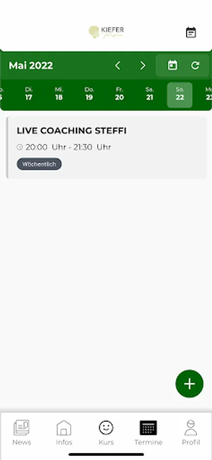 For a clear overview of the entire Kieferwissen offer, you can use the calendar function to view your appointments at a glance and use them for you, e.g. B. to find the most suitable coaching date.