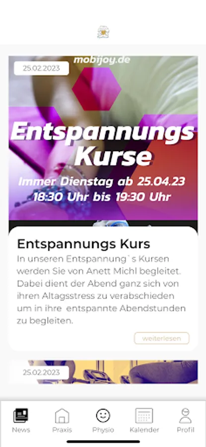 You will receive the most important news and updates from your MobiJoy practice as simply and directly as possible. Special opening hours or practice information, new exercises of the week or limited practice offers - you are always up to date with your own digital MobiJoy practice newspaper. With your own newsfeed in the app, you always have the most important information summarized compactly on your smartphone.