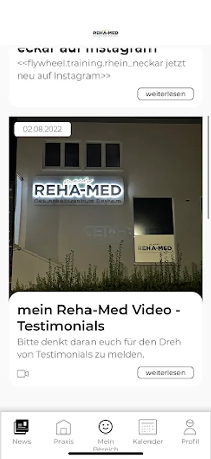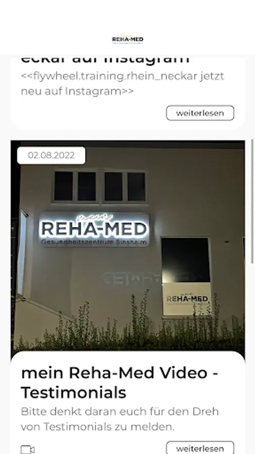 You will receive the most important news and updates from your Reha-Med health center as easily and directly as possible. Special opening hours or practice information, new exercises of the week or limited practice offers - you are always up to date with your own digital Reha-Med practice newspaper. With your own newsfeed in the app, you always have the most important information summarized compactly on your smartphone.