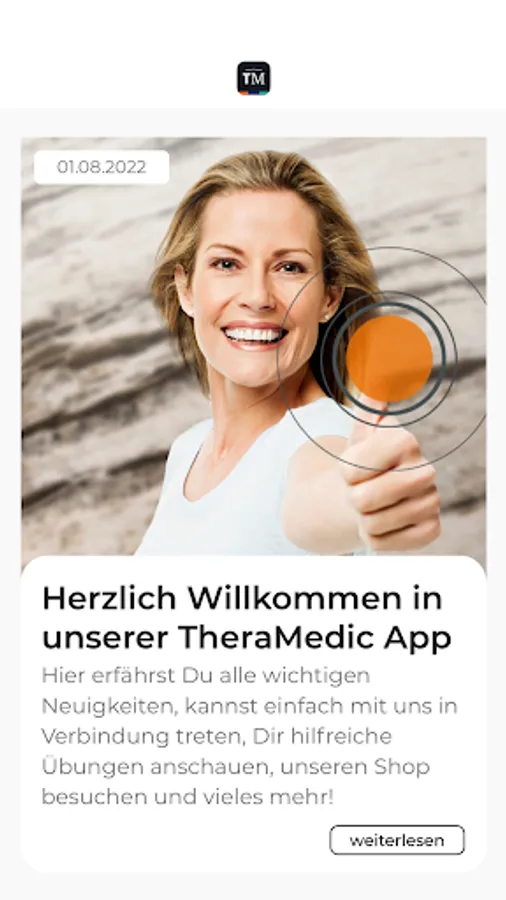 You will receive the most important news and updates on therapy and training at the TheraMedic health center as easily and directly as possible. Special opening hours or practice information, new exercises of the week or limited practice offers - you are always up to date with your own digital TheraMedic practice newspaper. With your own newsfeed in the app, you always have the most important information summarized compactly on your smartphone.