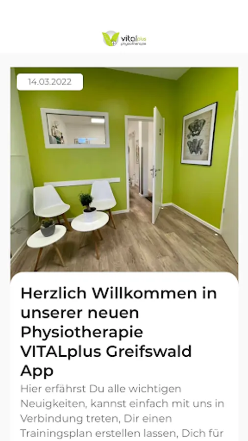 You will receive the most important news and updates from your VITALplus practices as easily and directly as possible. Special opening hours or practice information, new employees, exercises of the week or limited practice offers - you are always up to date with your own digital VITALplus practice newspaper. With your own newsfeed in the app, you always have the most important information summarized compactly on your smartphone.