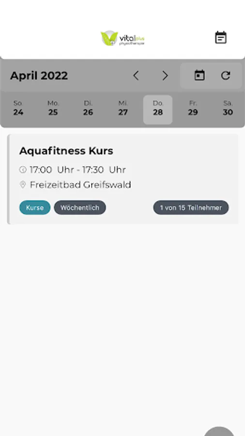 For a clear overview of the entire VITALplus practice and course offer, you have the option of viewing your appointments at a glance with the calendar function. B. to find the most suitable health course and register for it easily in the app. This gives us the opportunity to see who is taking part in our courses and what the course utilization looks like compared to the status quo.