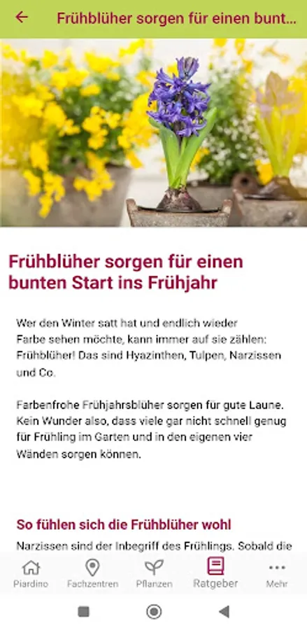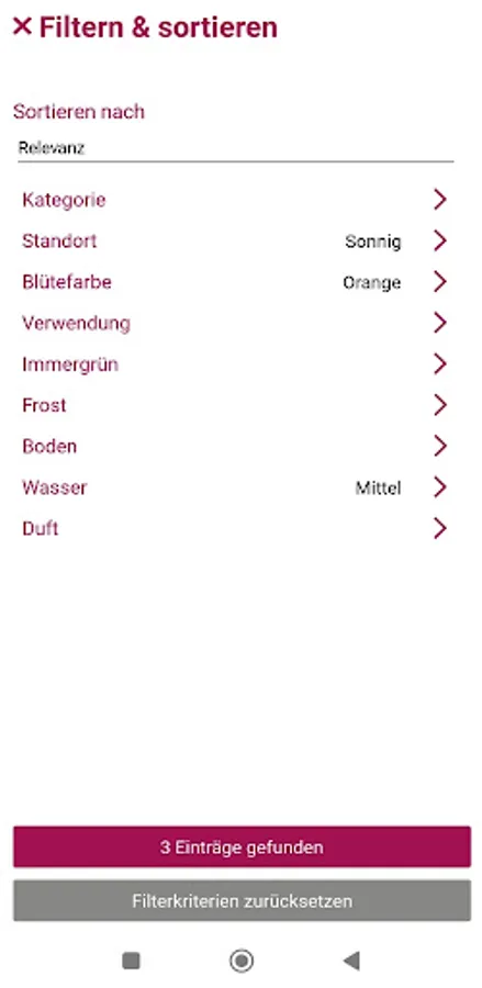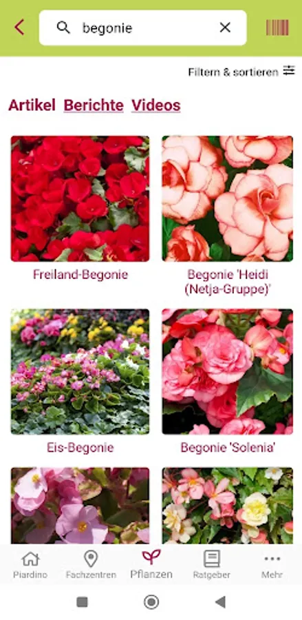 Additional content of the Piardino APP is an interactive search that allows you to search for specific plants by flower color, location requirements and growth behavior.