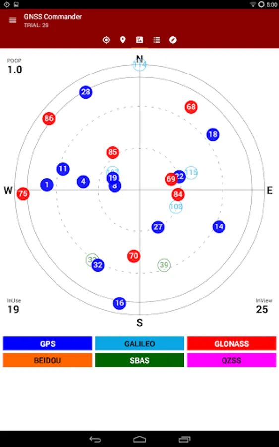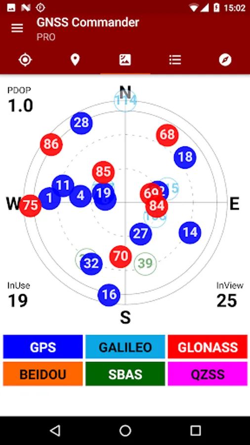 + Satellite list & Sky-Plot with subsystems like GPS, Glonass or Galileo