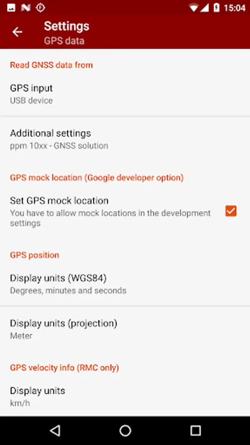 + Mock location provider (e.g. use your external device for navigation)