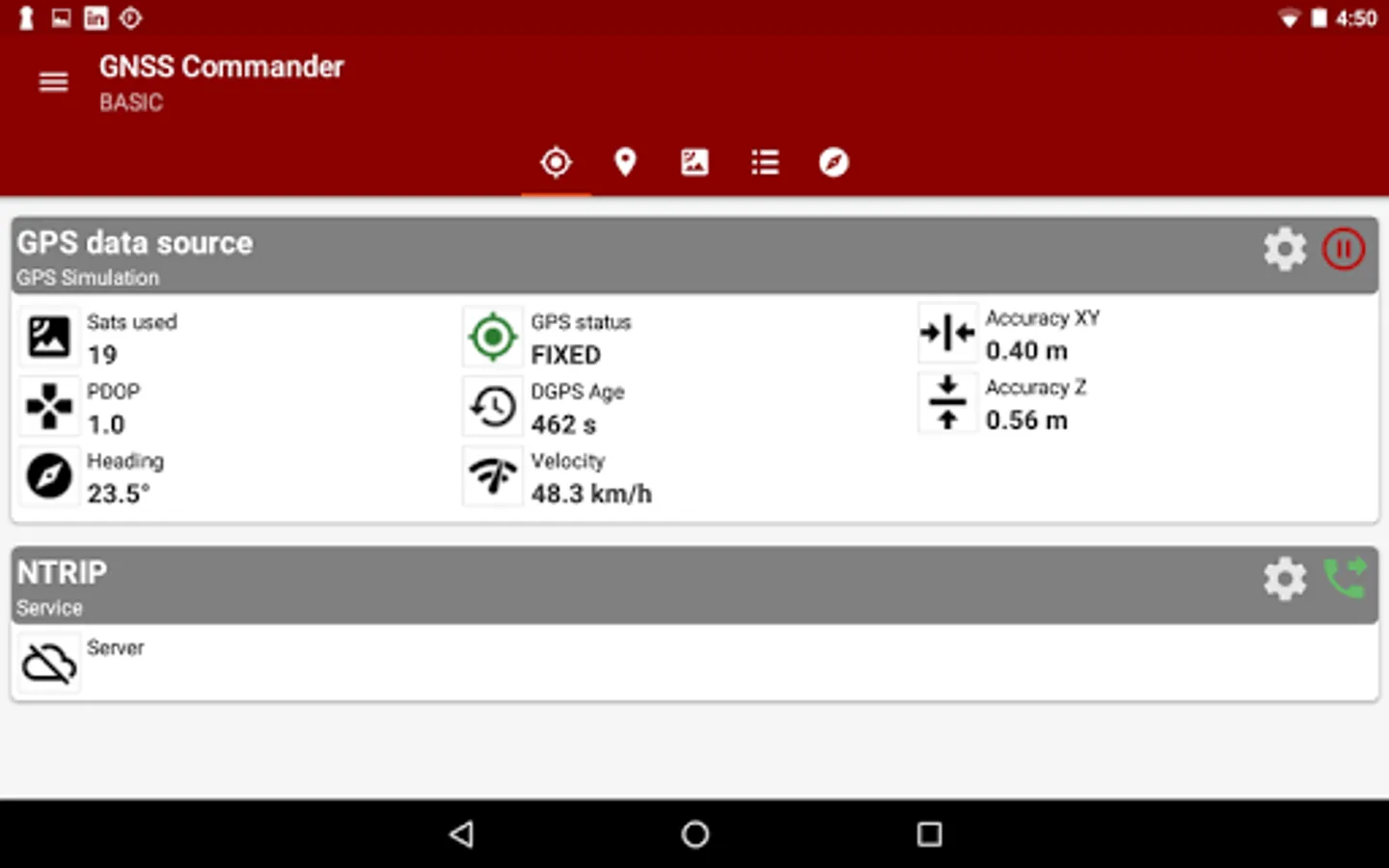 Show GPS status data like position, height, accuracy, satellites, velocity, etc.