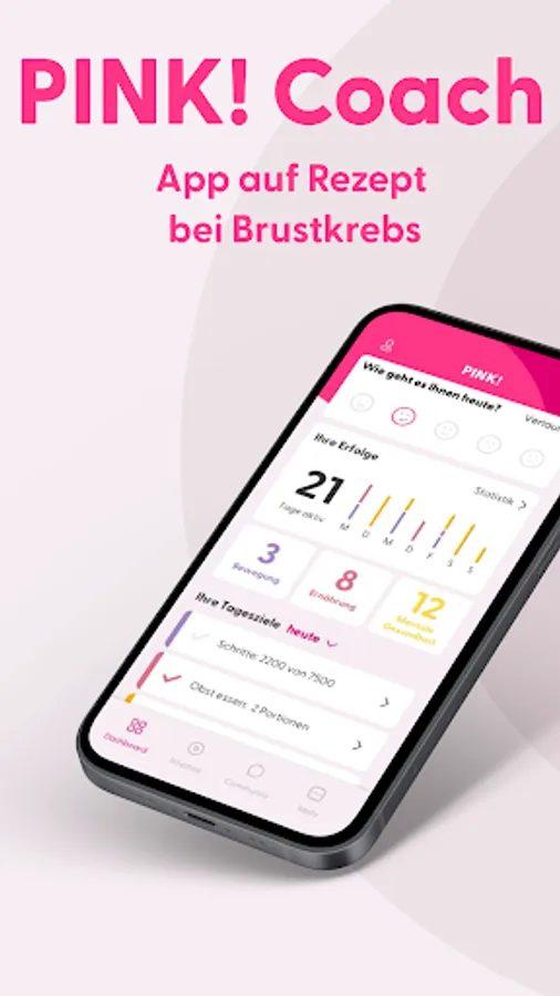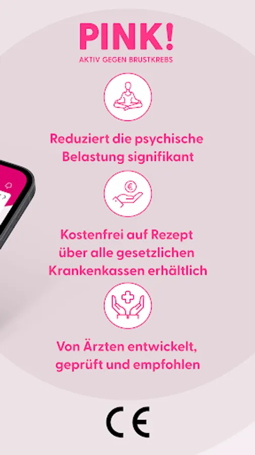 PINK! Coach is only available as an app on prescription. Before use, a doctor should confirm that PINK! Coach is suitable for you and your specific health situation. PINK! Coach does not provide medical or therapeutic diagnosis or treatment and does not replace a doctor's appointment.
