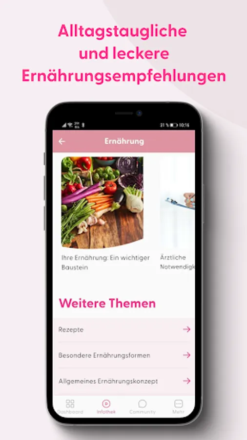 PINK! Coach is your digital assistant for nutrition, exercise and mental health. With daily changing and individual goals, you will be motivated and challenged - without being overwhelmed.