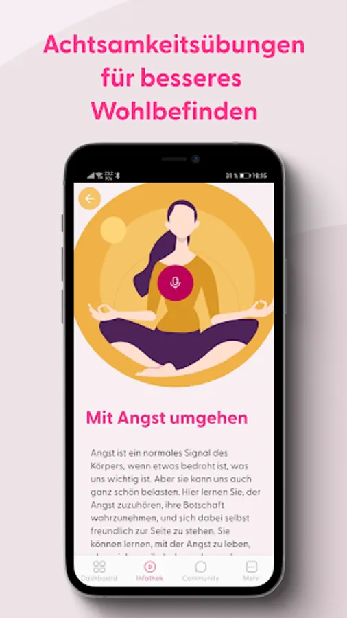 dr Boris Bornemann accompanies you in the app to pause for a moment in everyday life: "With mindfulness exercises and meditation, you can have a decisive influence on your well-being." This includes: