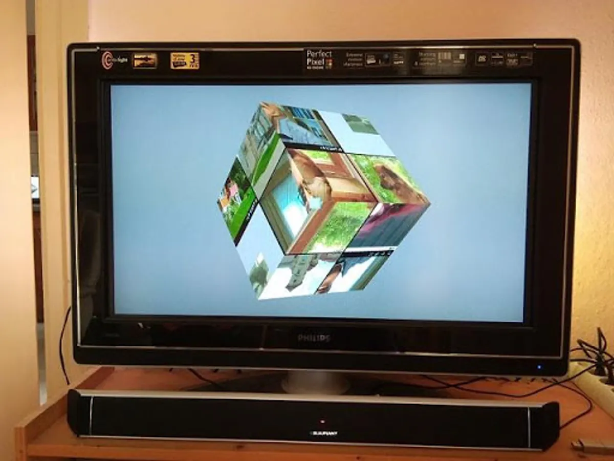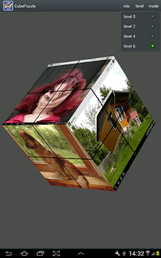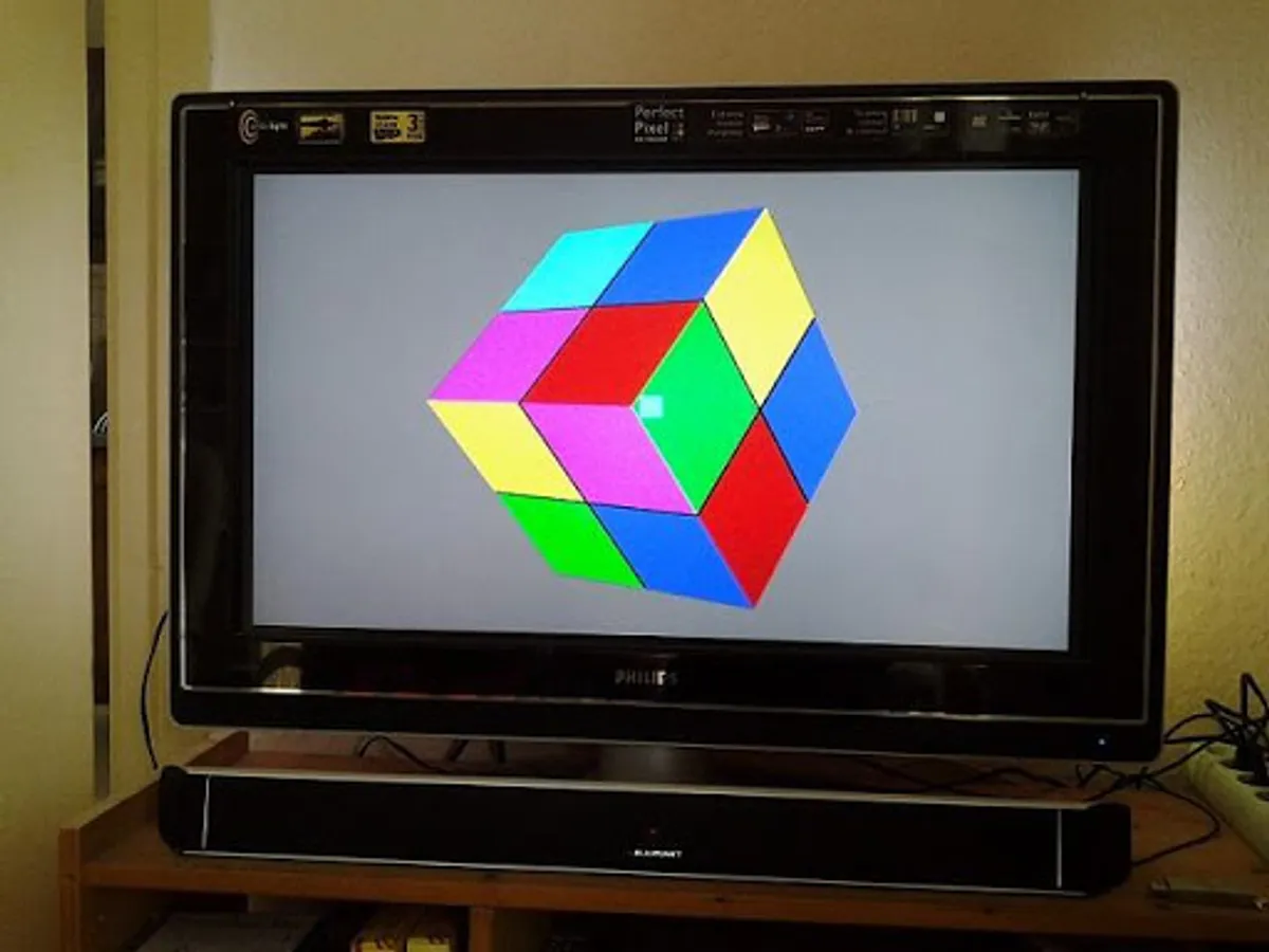 6 images or 6 color surfaces are divided into 4 parts and mixed.