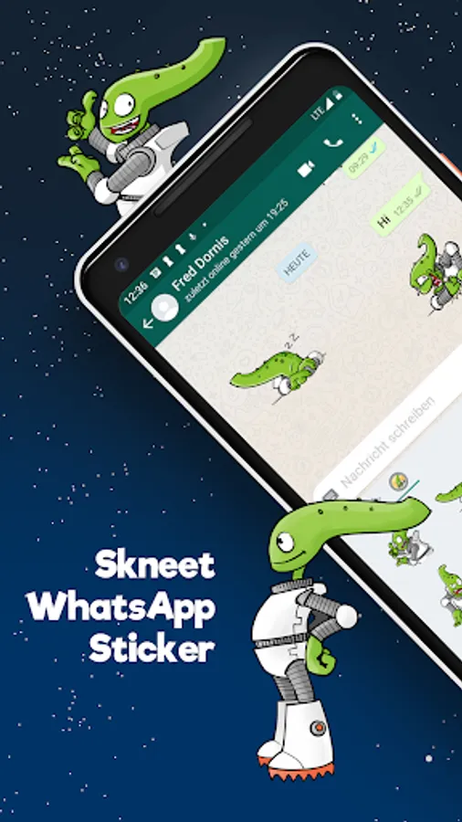 And now Skneet has landed on your smartphone. Send Skneet stickers to your friends and family. Have fun!