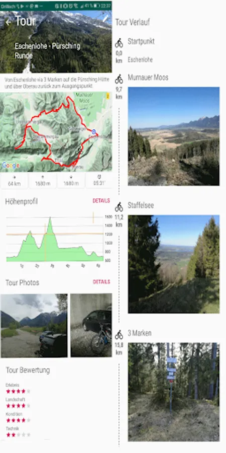 Record your mountain bike tours. Your photos during the tour are automatically assigned to the track position. So you can track your tour later and provide descriptions and waypoints. You can then share these tours with your friends.