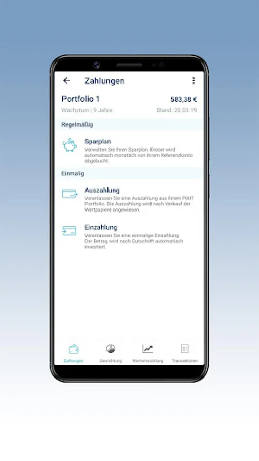 With the TARGOBANK PIXIT app, you always have an overview of your online asset management and can easily and conveniently keep an eye on your portfolio while on the move and make individual changes.