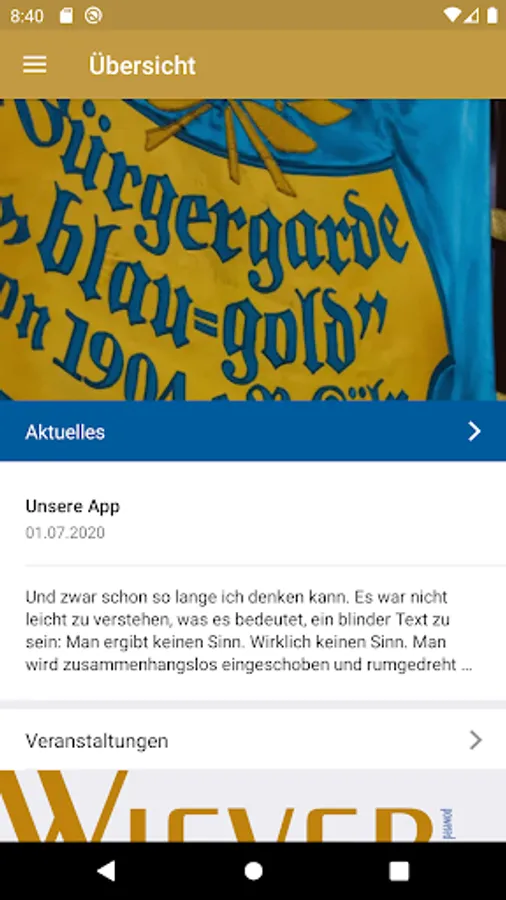 The new app of the citizens guard "blue-gold" from 1904 e.V. Cologne. Get insight into current topics related to society.