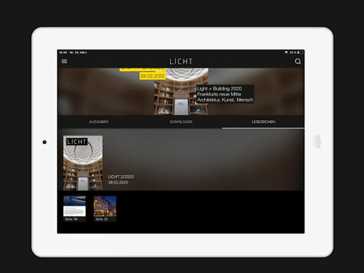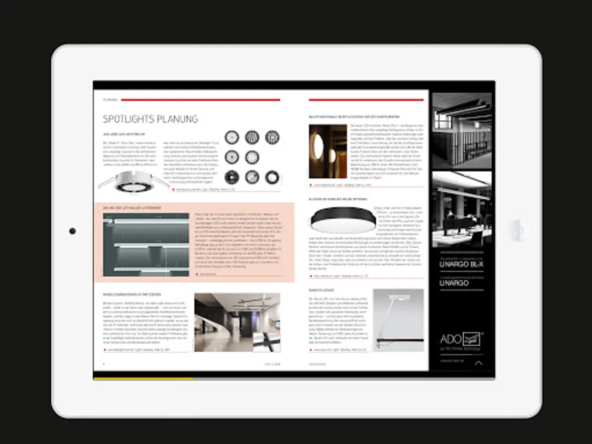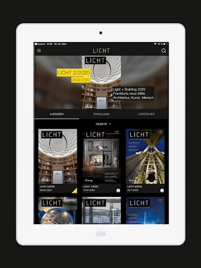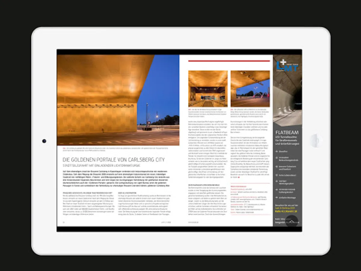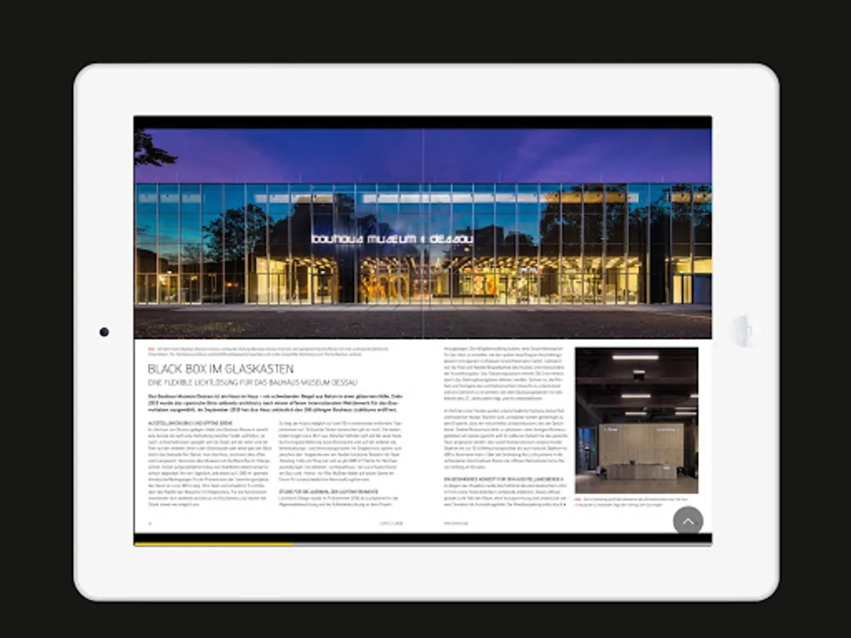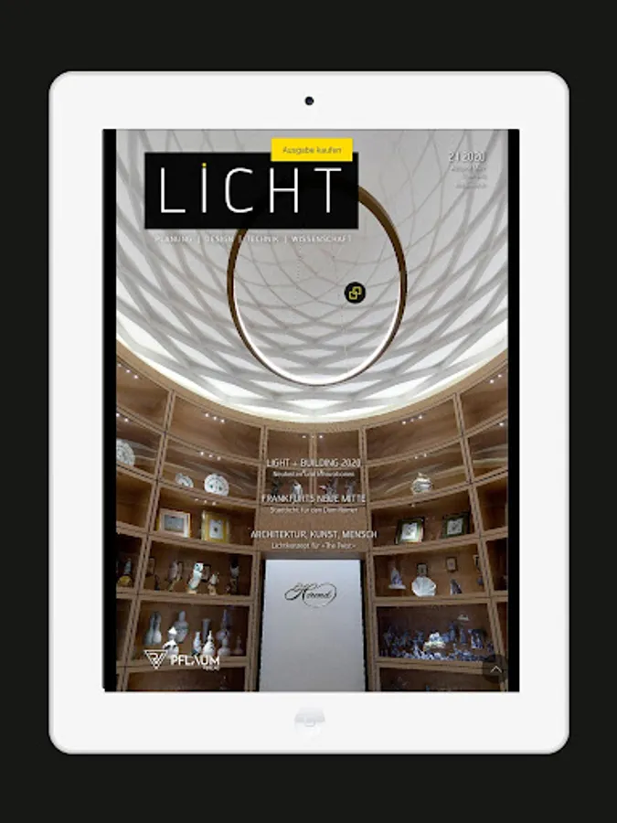 "LICHT" is the largest German-language trade magazine in the lighting industry. The specialist magazine, which has been established for over 70 years, offers anyone interested in everything to do with light - from projects, design, planning to people, events and industry news on research, science and technology. The magazine LICHT is an organ of the Deutsche Lichttechnische Gesellschaft e.V. (LiTG), the standards committee for lighting technology (FNL) in the DIN Deutsches Institut für Normung e.V. and the association for living room lighting, lampshade and accessories industry (VWLZ)