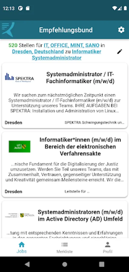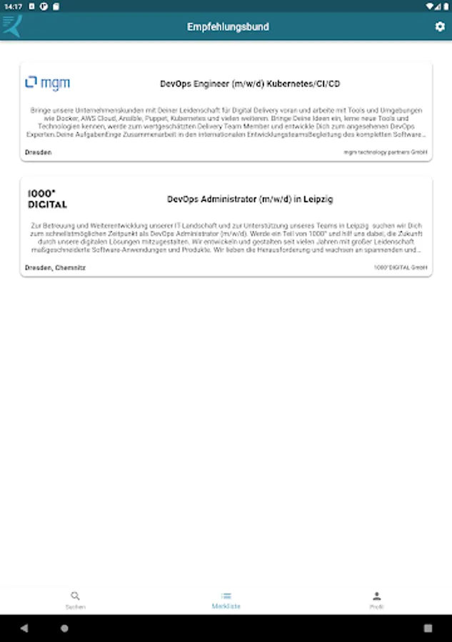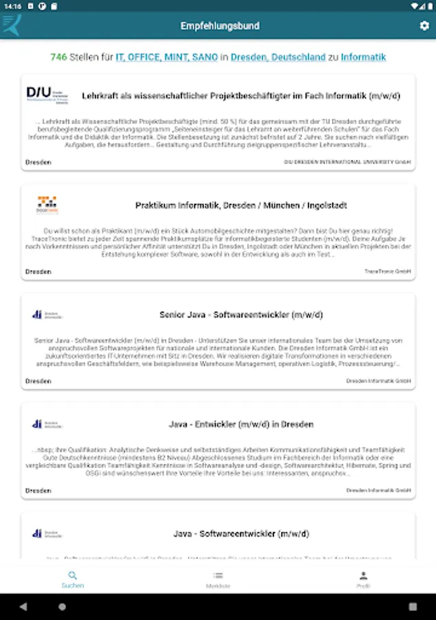 You can subscribe to the job searches as a push message on your device. If there are new job offers, you will receive a push message which shows new offers.