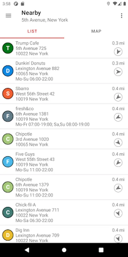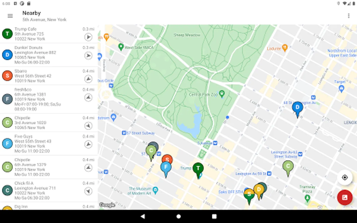 Find fast food restaurants near your location and anywhere in the world. The app displays items in a list as well as on a map and lets you easily navigate to an item by one click.