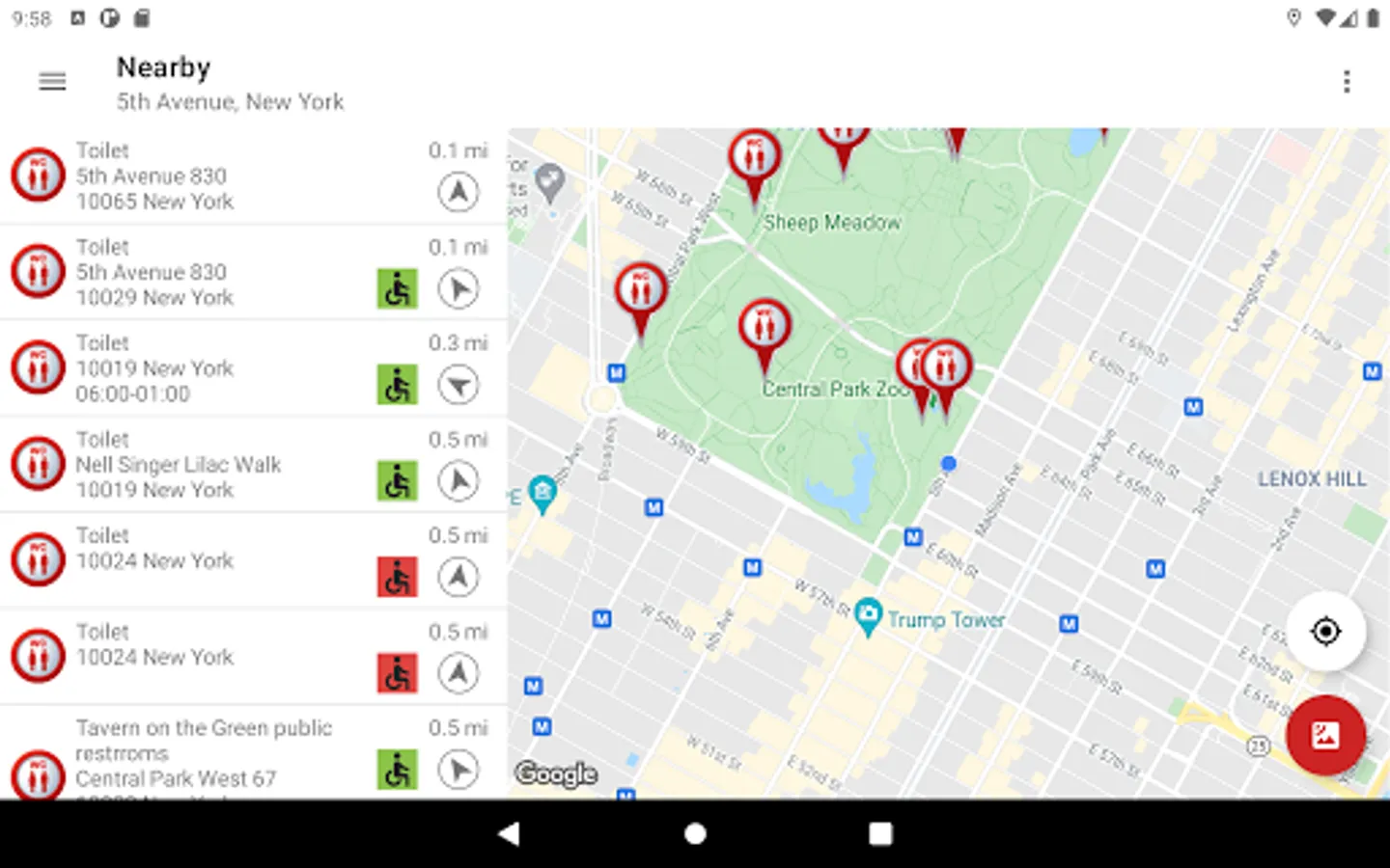 Find public toilets and restrooms near your location and anywhere in the world. The app displays toilets / lavatories / restrooms in a list as well as on a map and lets you easily navigate to an item by one click.