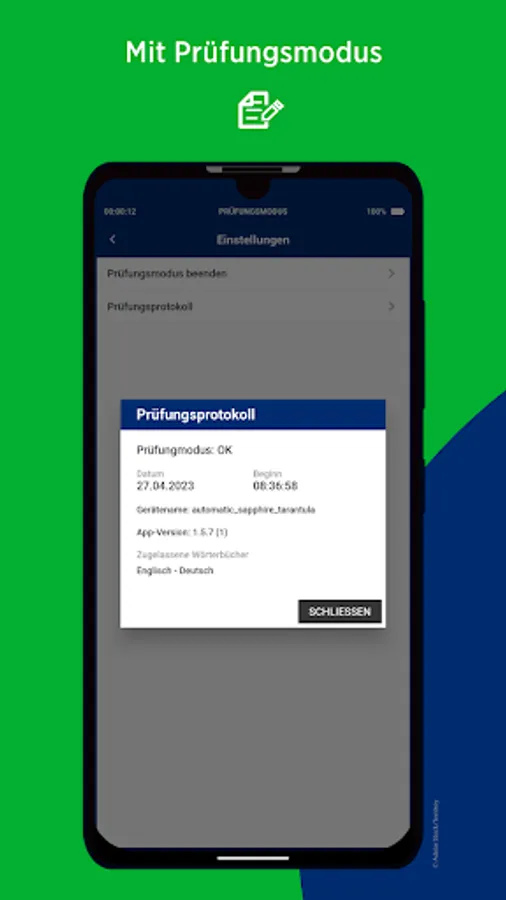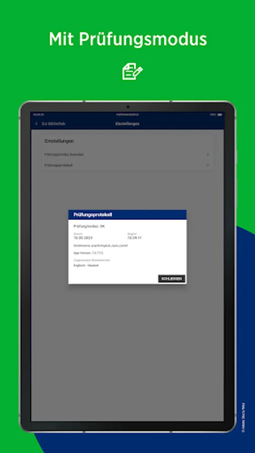 With the exam mode, the app is ideal for use in exams. The exam mode focuses on the most important thing you need in the exam. And it ensures that the Internet or stored data cannot be accessed. Without any cheating.
