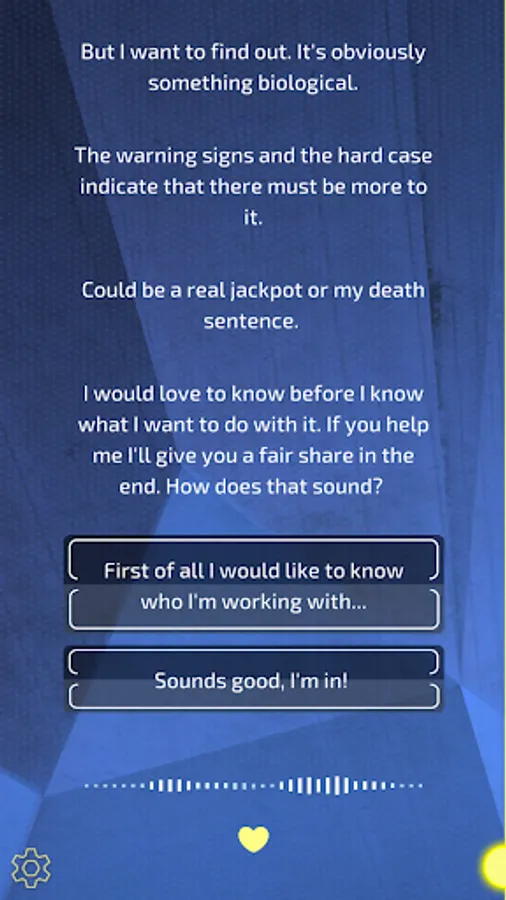 You decide the course of the adventure - in real time. Hanna will frequently send you text messages: in the app, via push notification. You can directly answer the push-messages without starting the app. Just casually play the story - any time - in real time.