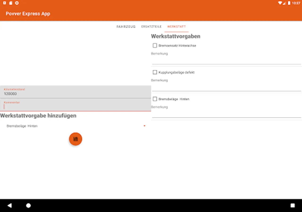 Povver Express GmbH workshop and handover protocol app. Simplifies the management of workshop entries and stocks. Digitized handover of the vehicle.