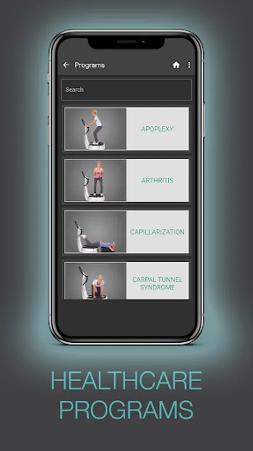 The exercises in the “Healthcare” category are all about improving your health. In this category, programs focused on the following health conditions are offered: osteoarthritis (for particular areas of the body), cervical spine syndrome, sciatica, capillarization, lipoedema, mobilization, mutiplesclerosis, osteoporosis, and wheelchair training, among others.