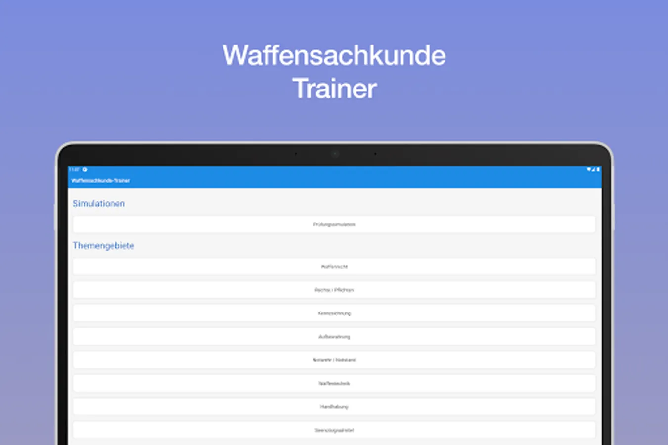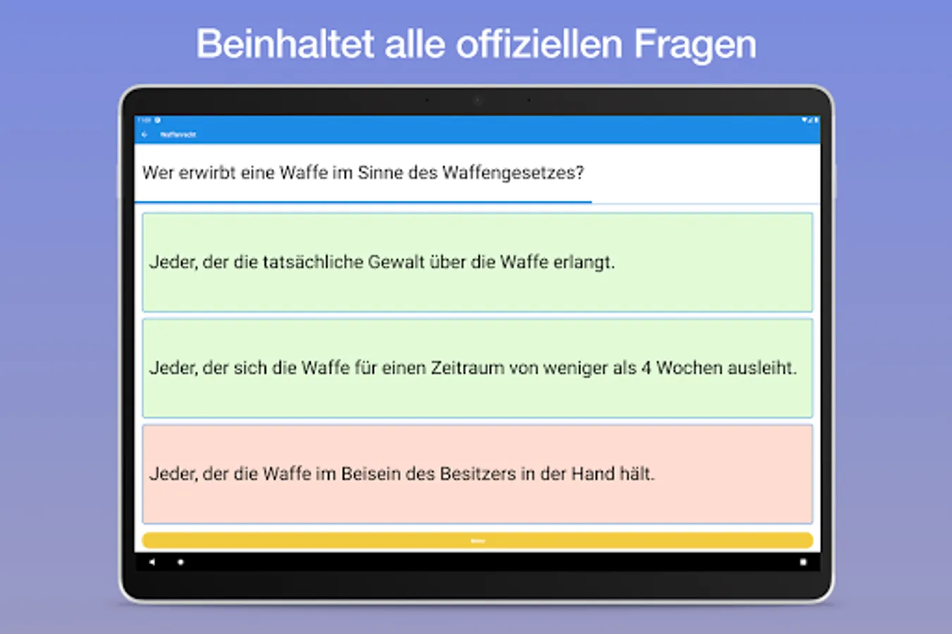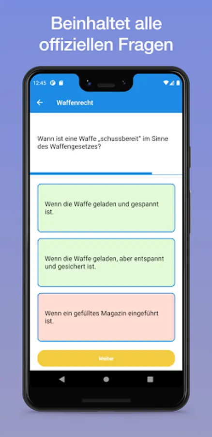 This app can be optimally used for learning and practicing, as the learning coach uses the official questionnaire from the Federal Ministry of the Interior.
